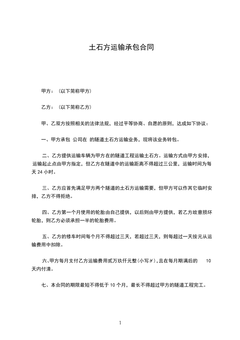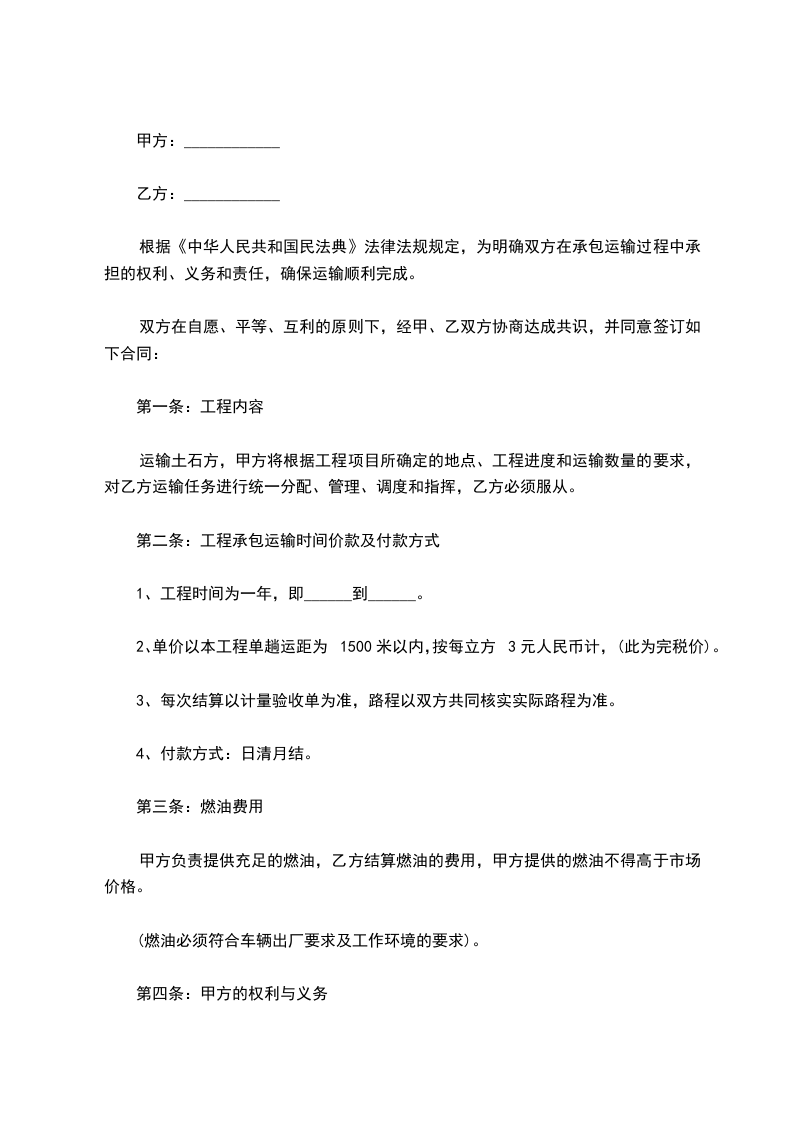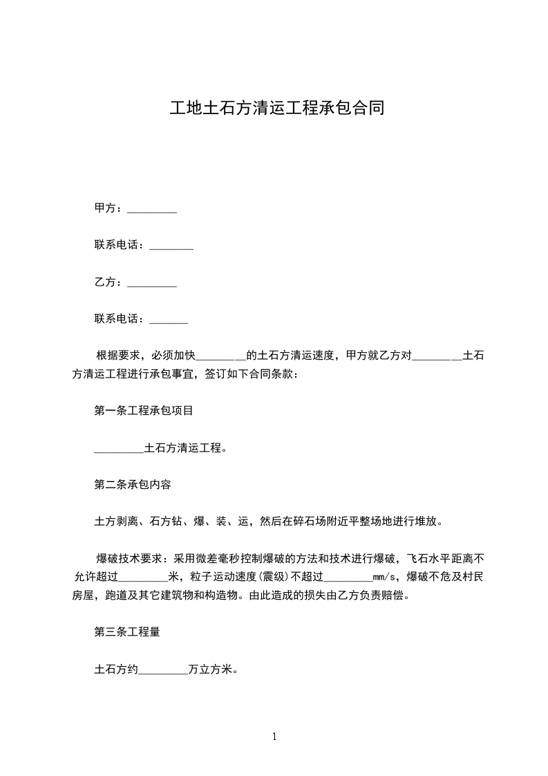 根据要求,必须加快_________的土石方清运速度,甲方就乙方对_________土石方清运工程进行承包事宜,签订如下合同条款: