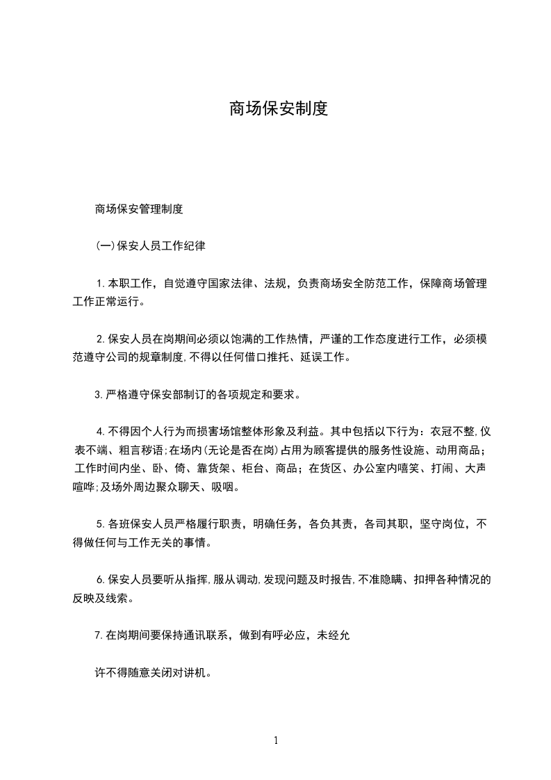 一)、《专职保安岗位职责》(见附件