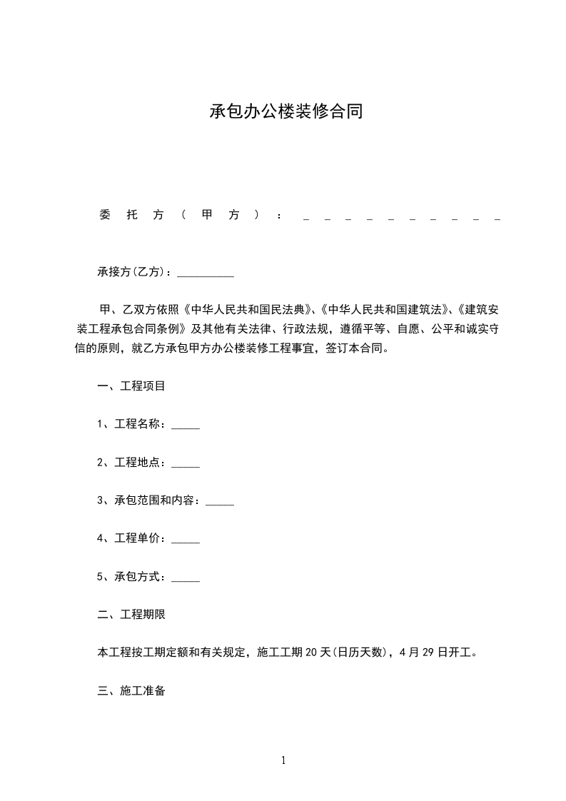 一、 工程名称: