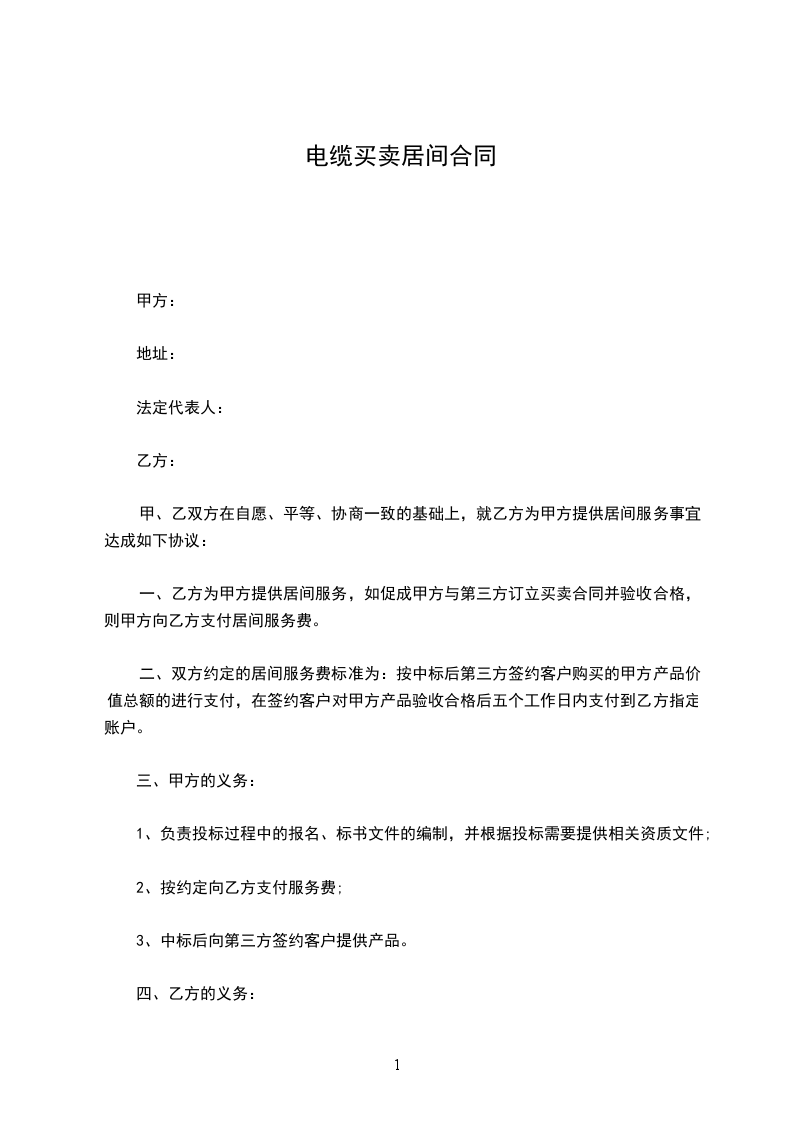 一、乙方为甲方提供居间服务,如促成甲方与第三方订立买卖合同并验收合格,则甲方向乙方支付居间服务费。