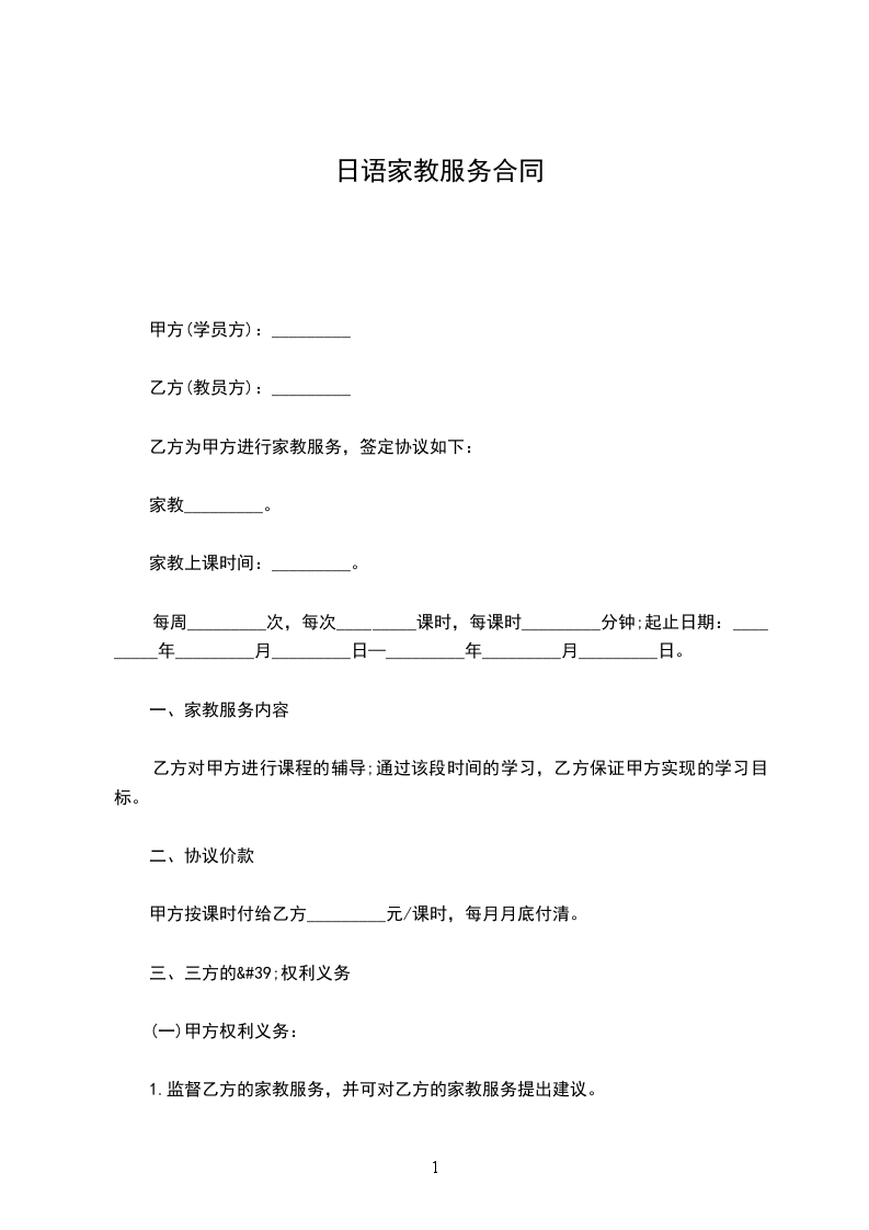 1.根据合同条款按时保质地对甲方进行家教服务。