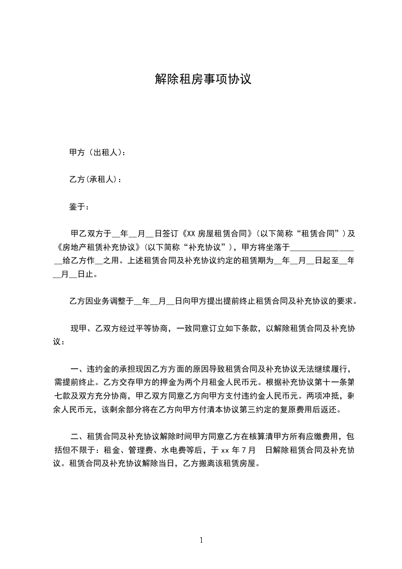 一、甲乙双方友好协商,一致同意解除合同。