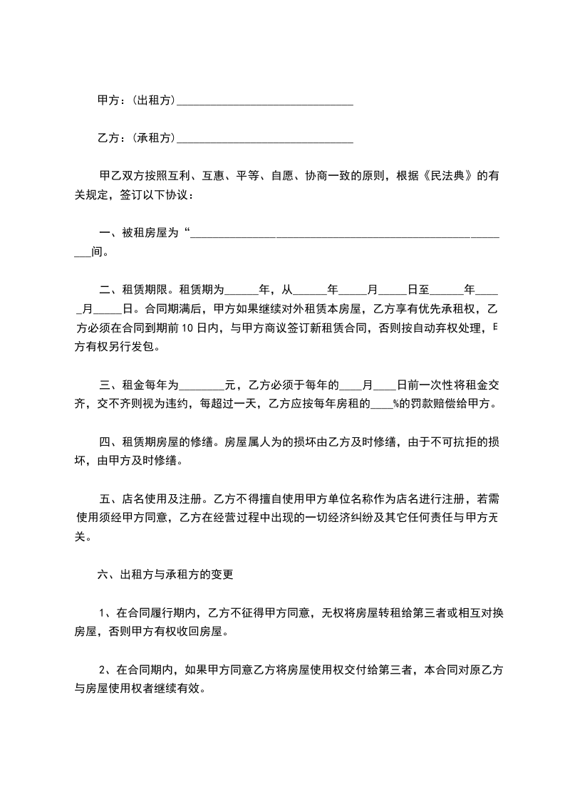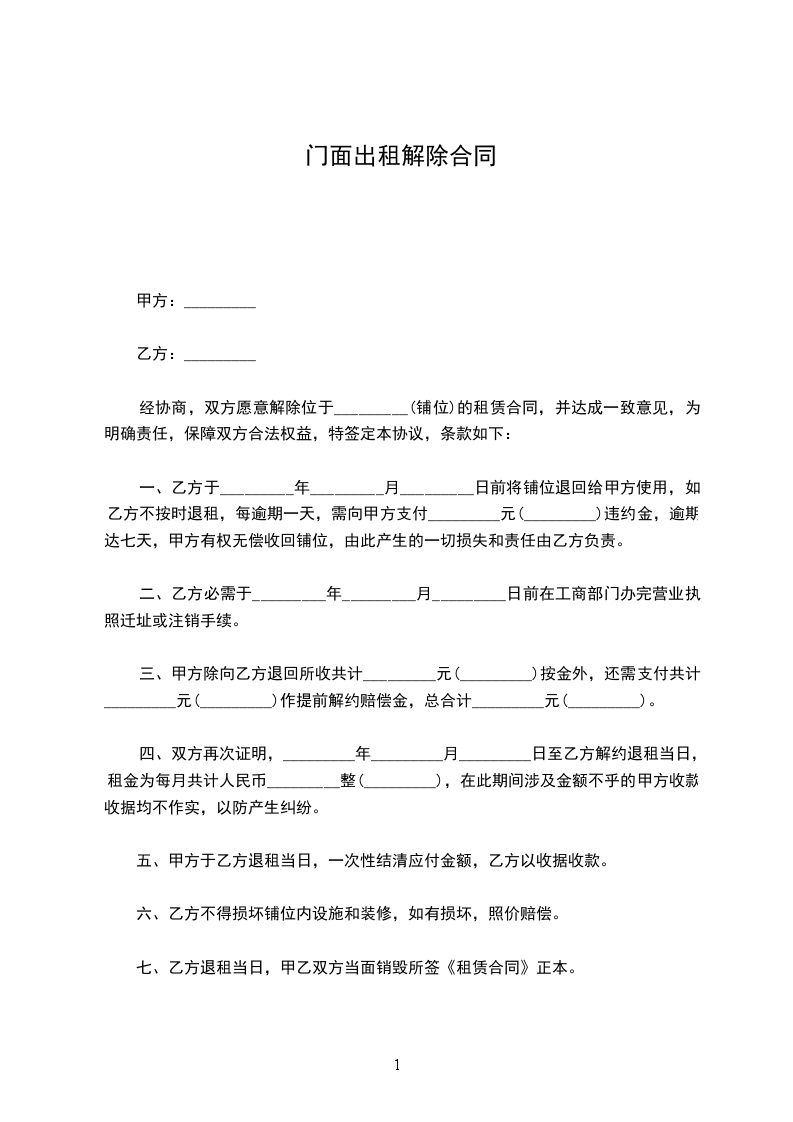 五、乙方应于本协议签订之日起,日内迁出租赁房屋,把门面房归还甲方。