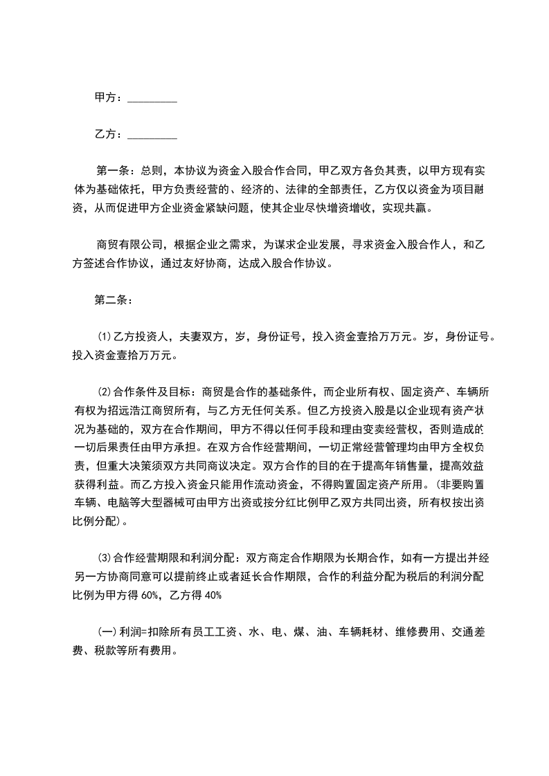 (1)乙方享有每年年度固定分红的权利,按入股多少确定。