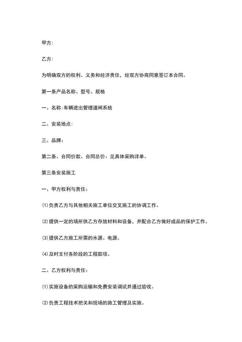 第五条合同价款的支付合同签订后,安装调试完成,通过甲方验收将以转账的方式给予乙方所需道闸款项。