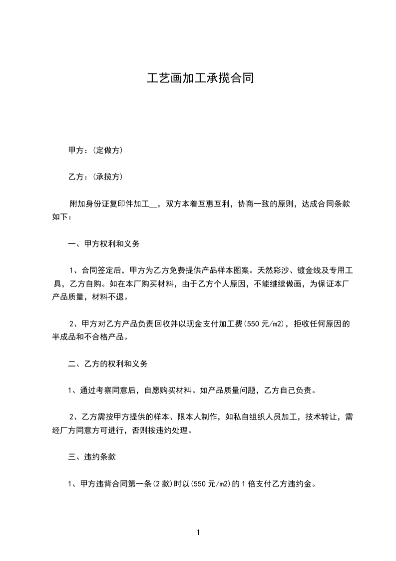1、合同签定后,甲方为乙方免费提供产品样本图案。天然彩沙、镀金线及专用工具,乙方自购。如在本厂购买材料,由于乙方个人原因,不能继续做画,为保证本厂产品质量,材料不退。