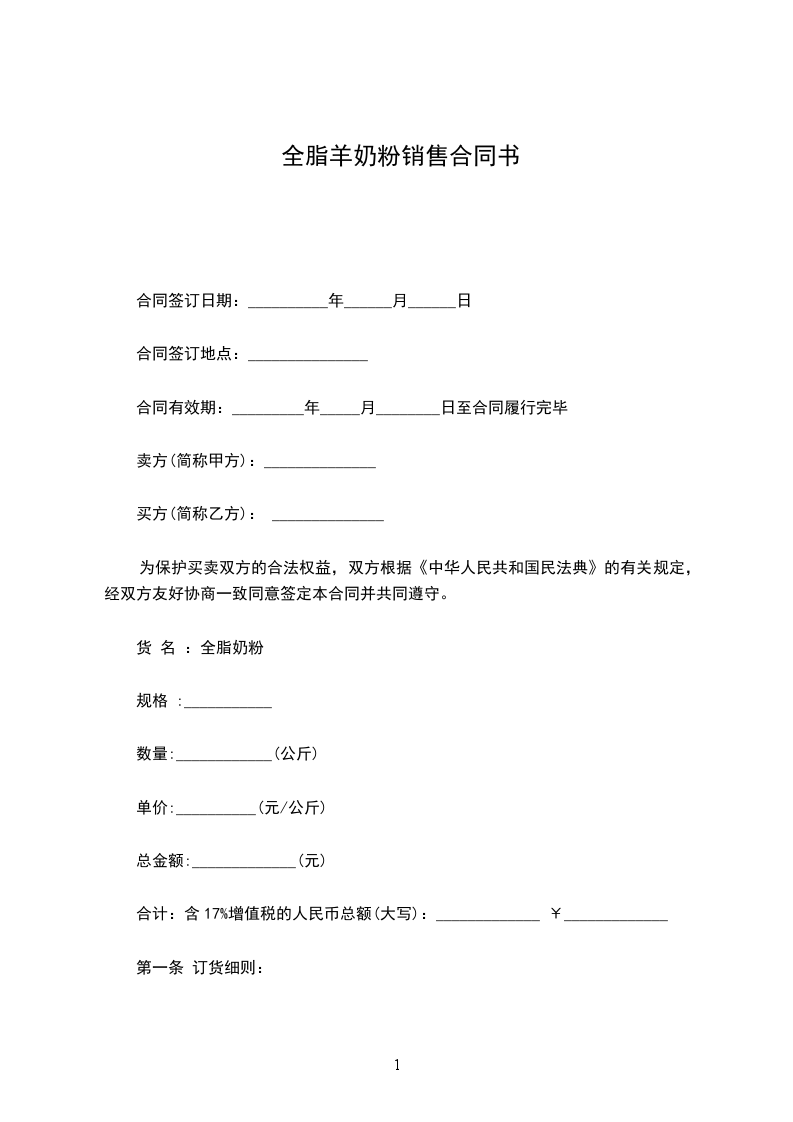 第一条 订货细则:
