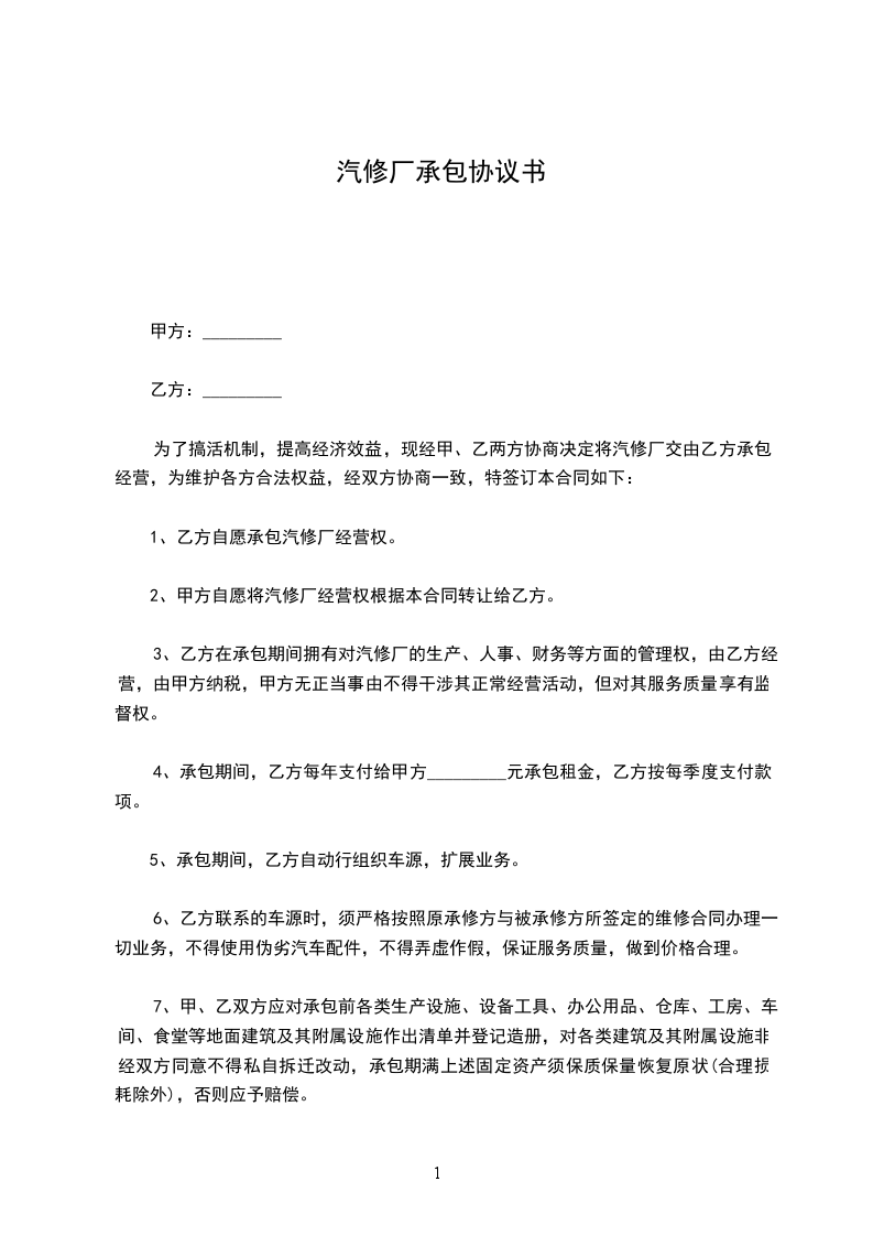 为了搞活机制,提高经济效益,现经甲、乙两方协商决定将汽修厂交由乙方承包经营,为维护各方合法权益,经双方协商一致,特签订本合同如下: