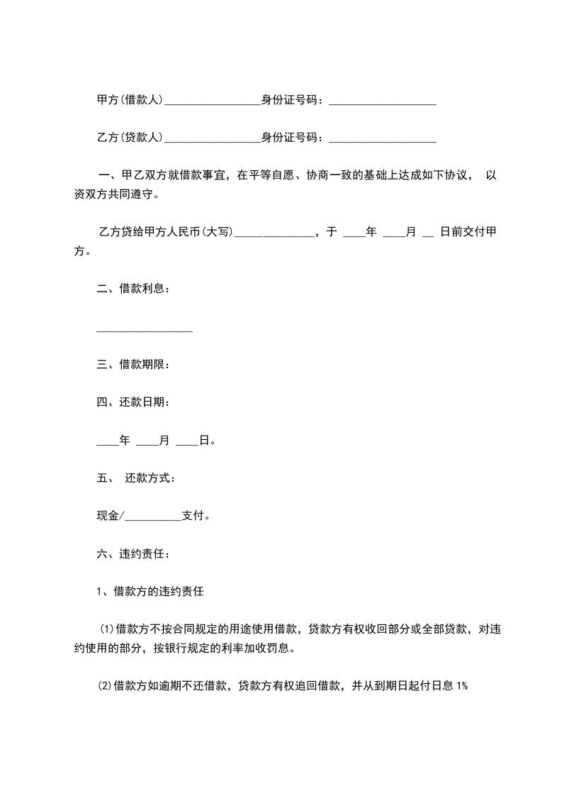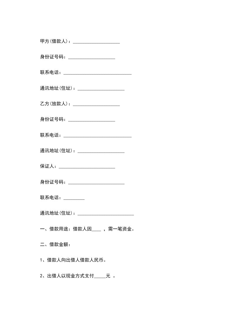 (一)、乙方借给甲方人民币(大写) 。