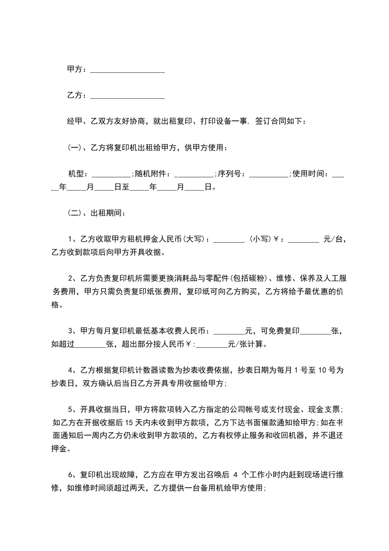 1.租赁物件在租赁期内由乙方使用。乙方应负责日常维修、保养,使设备保持良好状态,并承担由此产生的全部费用。