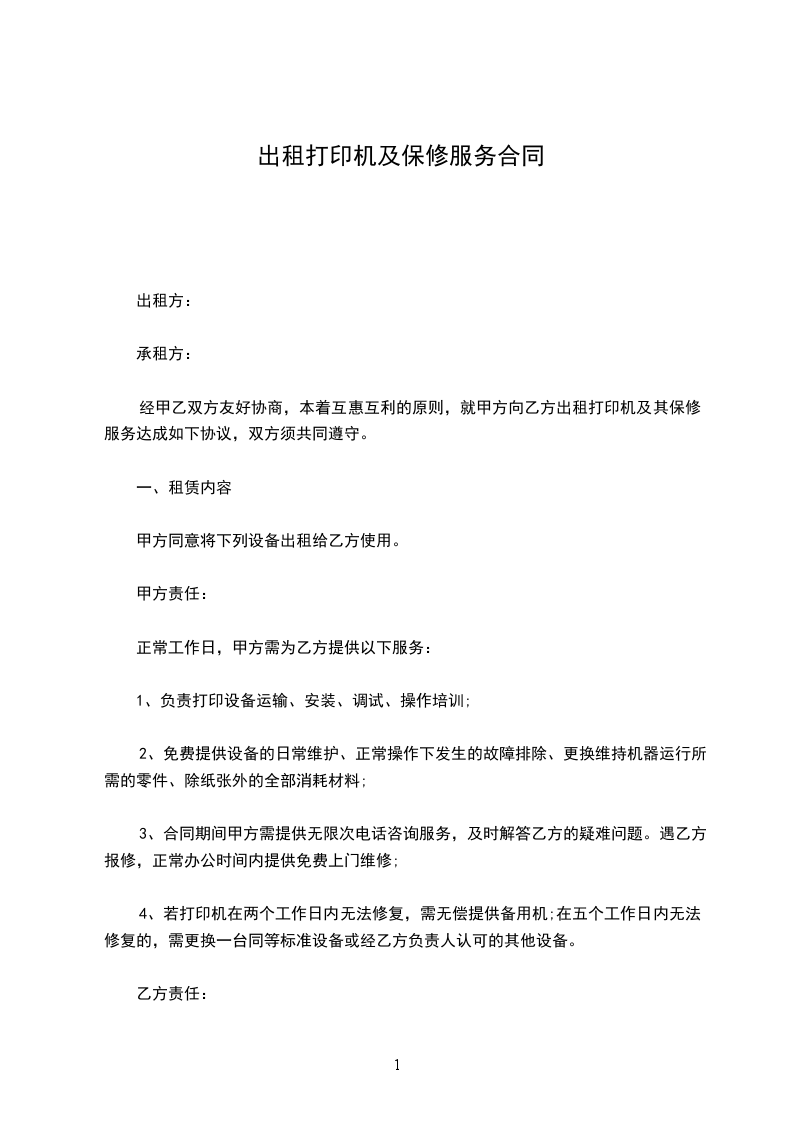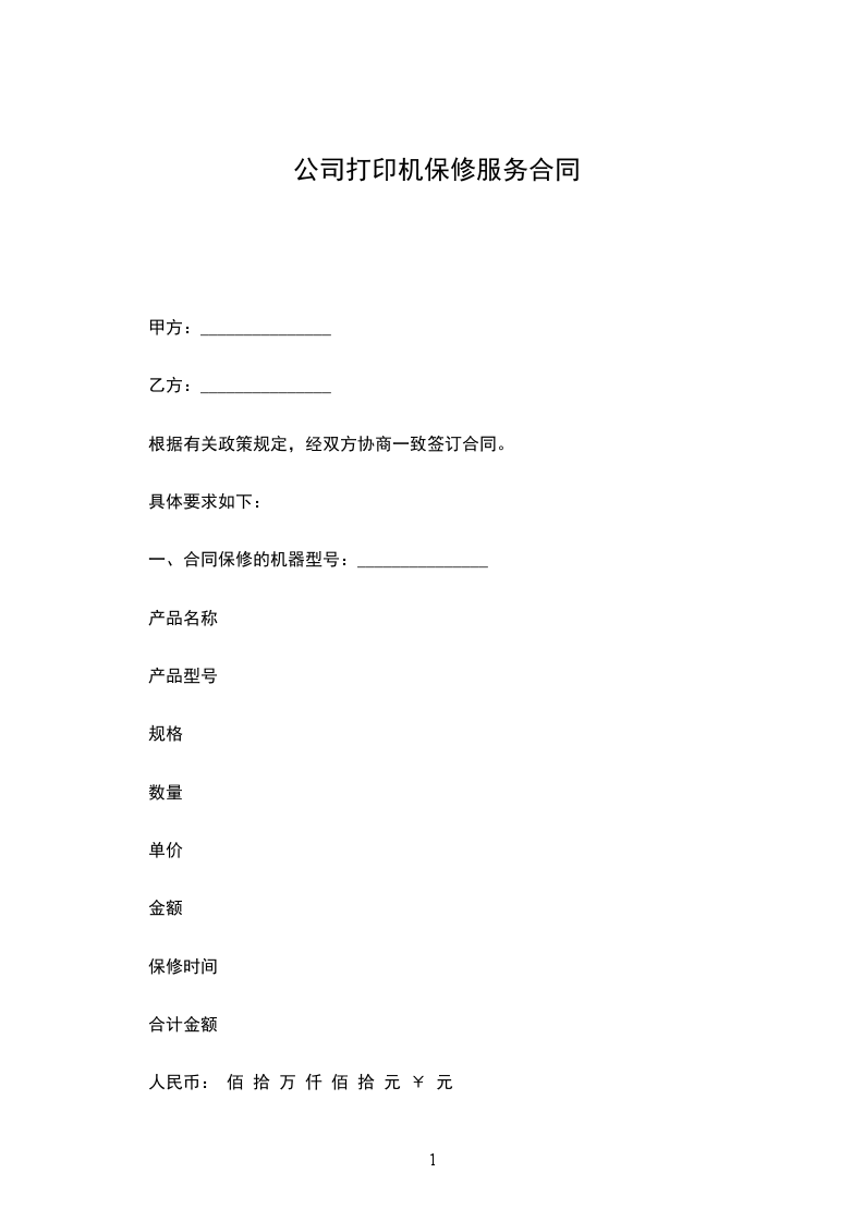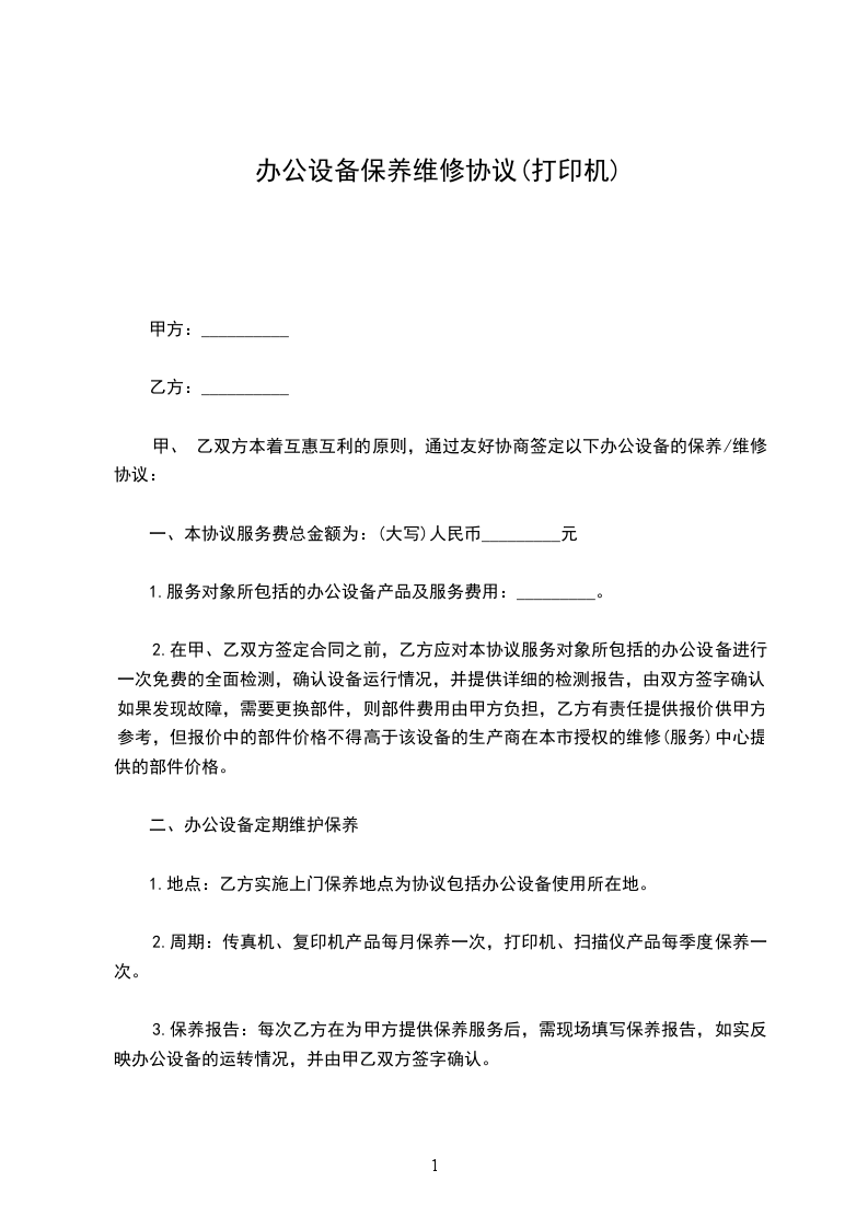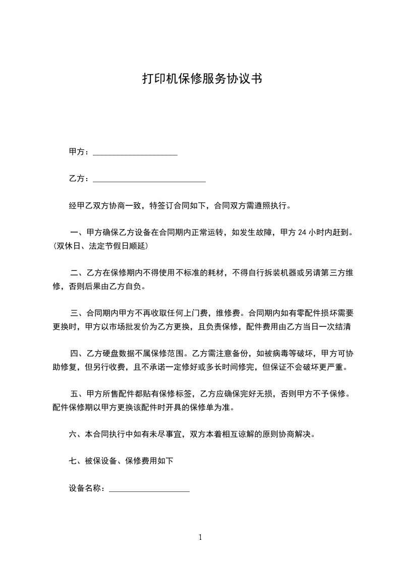 1.保修费用一年每台_____元,一年之内配件费用不到_____元的我公司将配以墨水或墨头形式抵消剩余款,配件价格和墨水、墨头价格具体附表格一。如超出部份仍然按_____元作为收费。