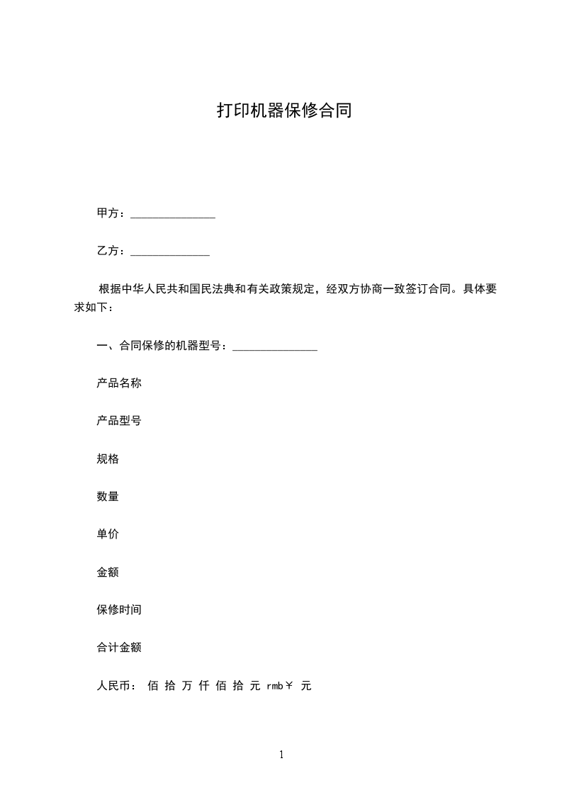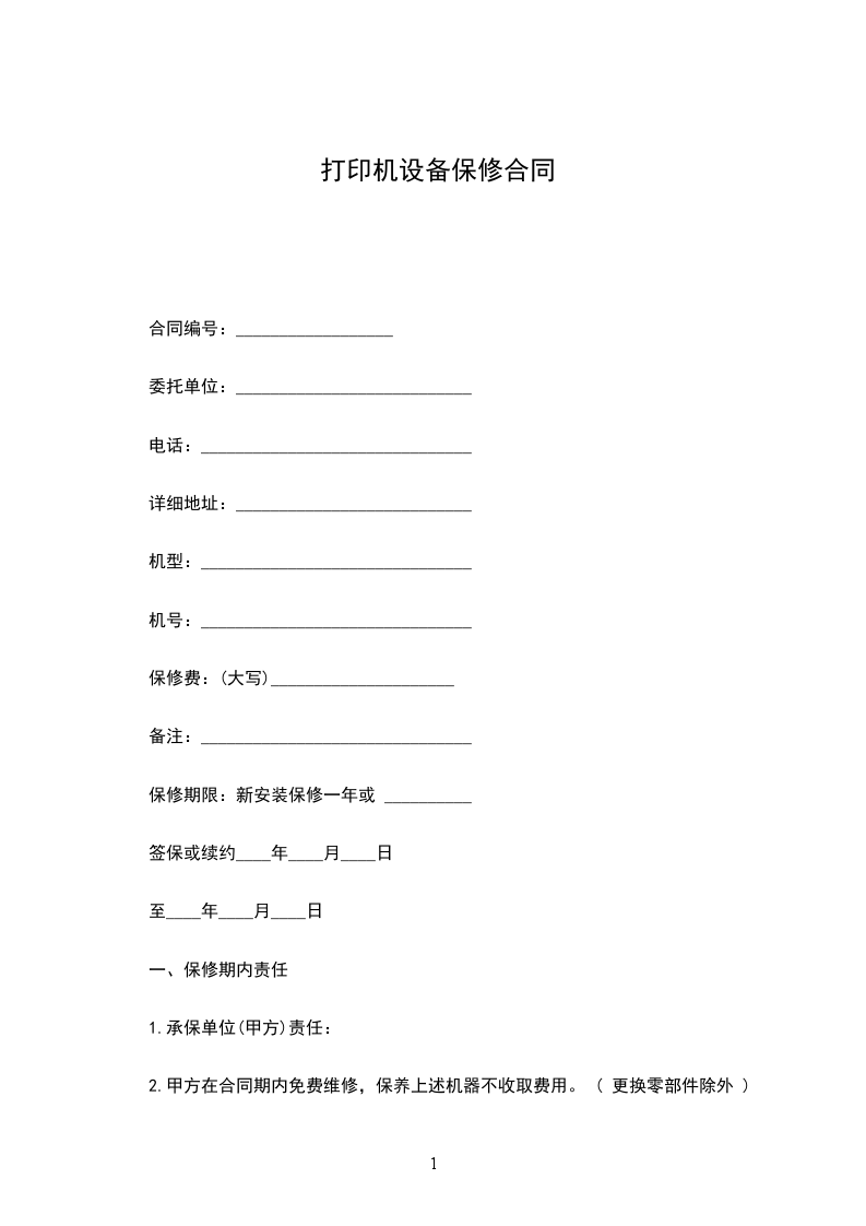 一、合同保修的机器型号:_______________