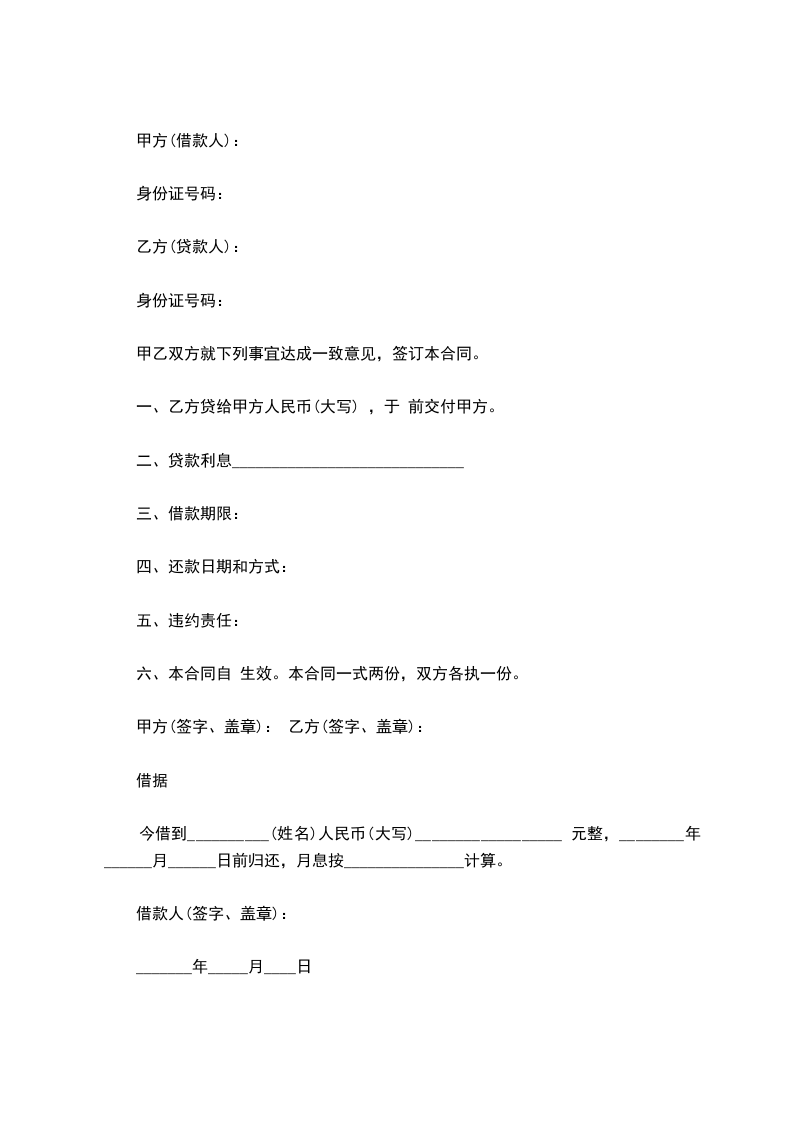 今借到__________(姓名)人民币(大写)__________________ 元整,________年 ______月______日前归还,月息按_______________计算。