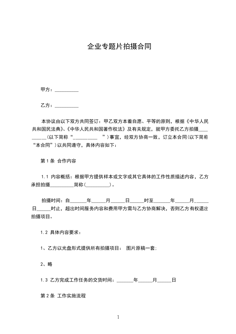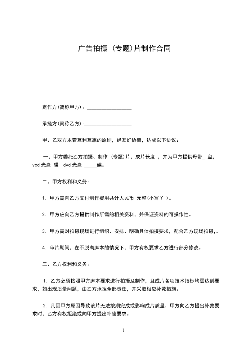 一、甲方委托乙方拍摄、制作 (专题)片,成片长度 ,并为甲方提供母带_ 盘, vcd光盘 碟, dvd光盘 _____碟。