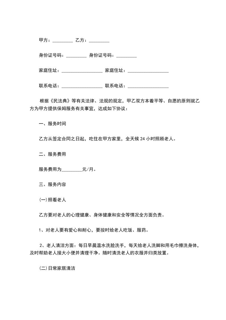 5、乙方在服务时段甲方应给提供饮食,平等待人,相互尊重。