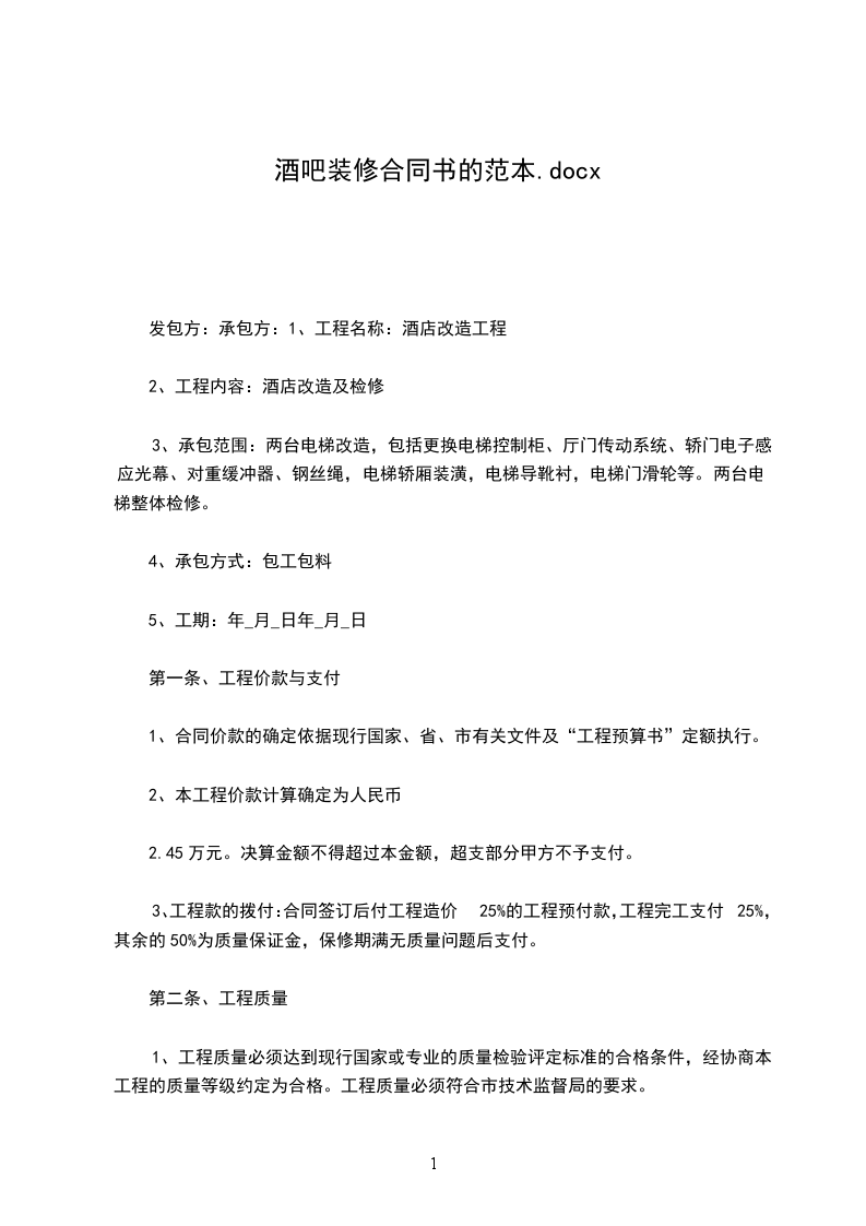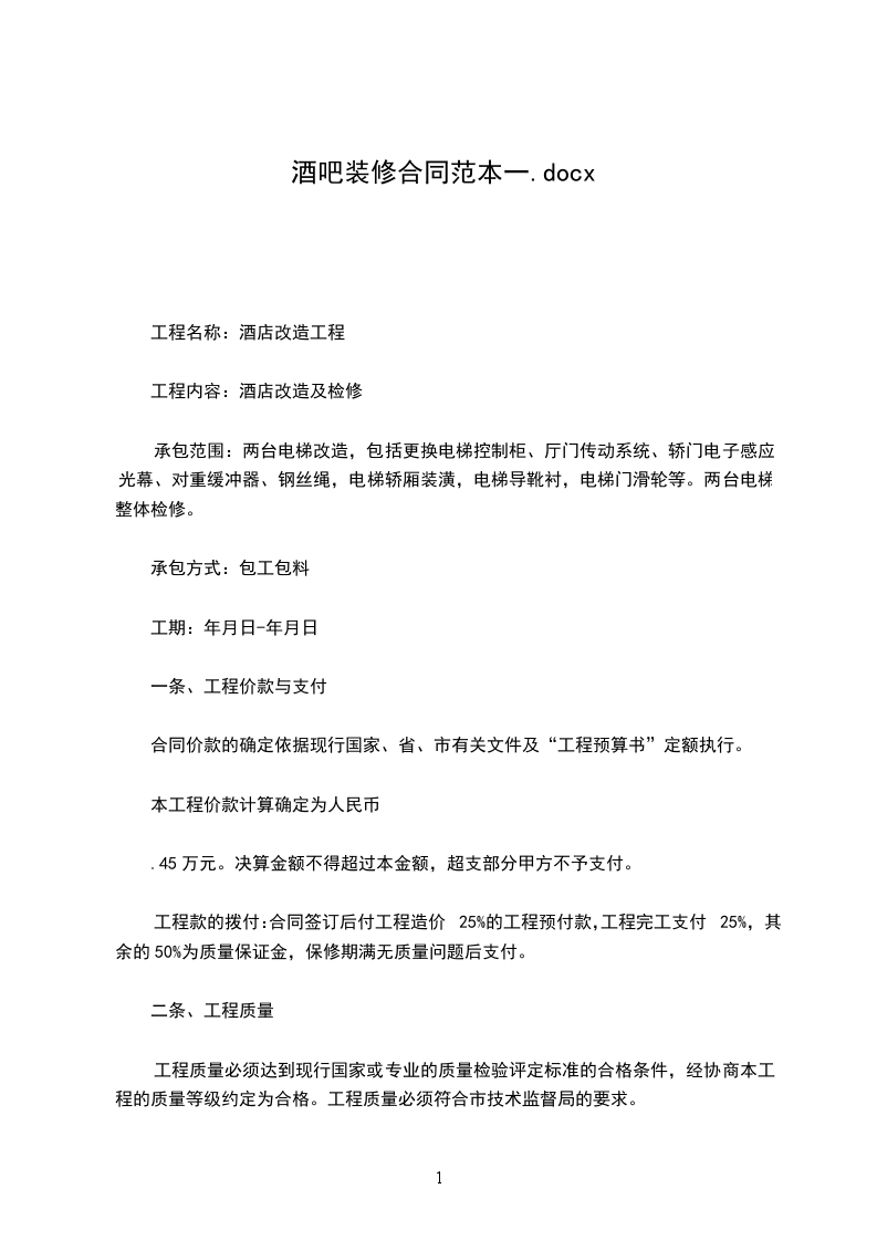 1、合同价款的确定依据现行国家、省、市有关文件及“工程预算书”定额执行。