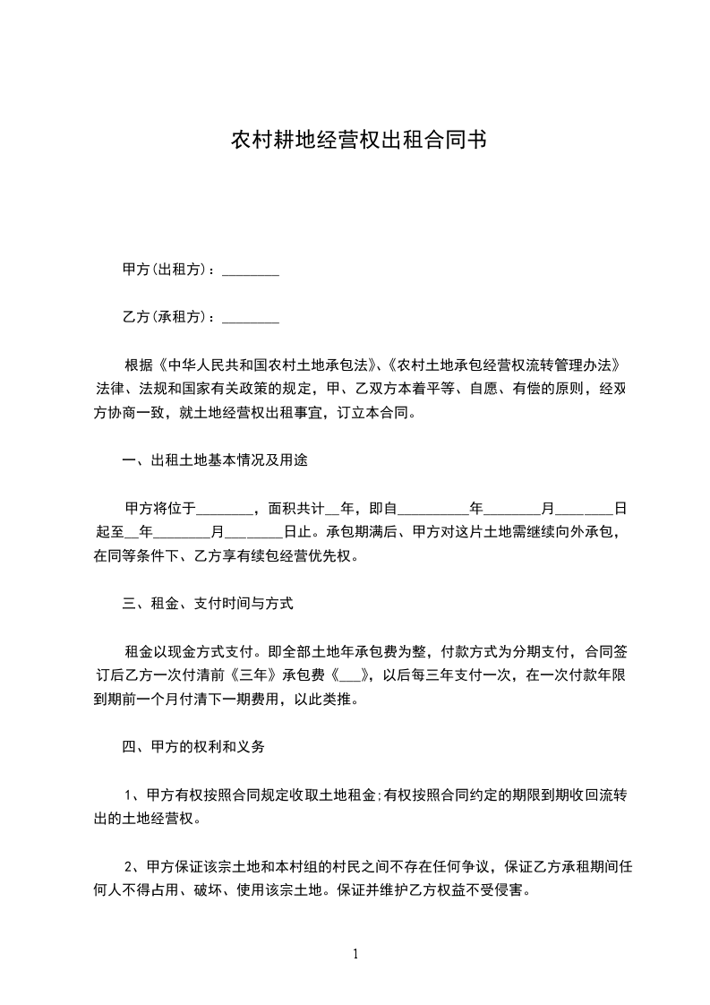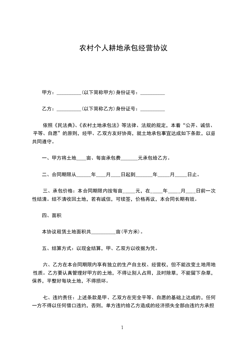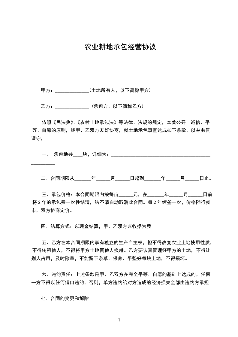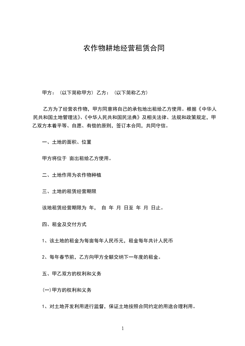 乙方为了经营农作物,甲方同意将自己的承包地出租给乙方使用。根据《中华人民共和国土地管理法》、《中华人民共和国民法典》及相关法律、法规和政策规定,甲乙双方本着平等、自愿、有偿的原则,签订本合同,共同守信。
