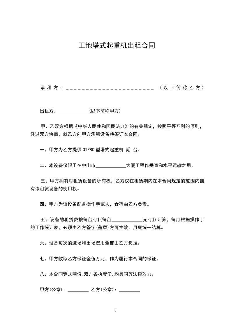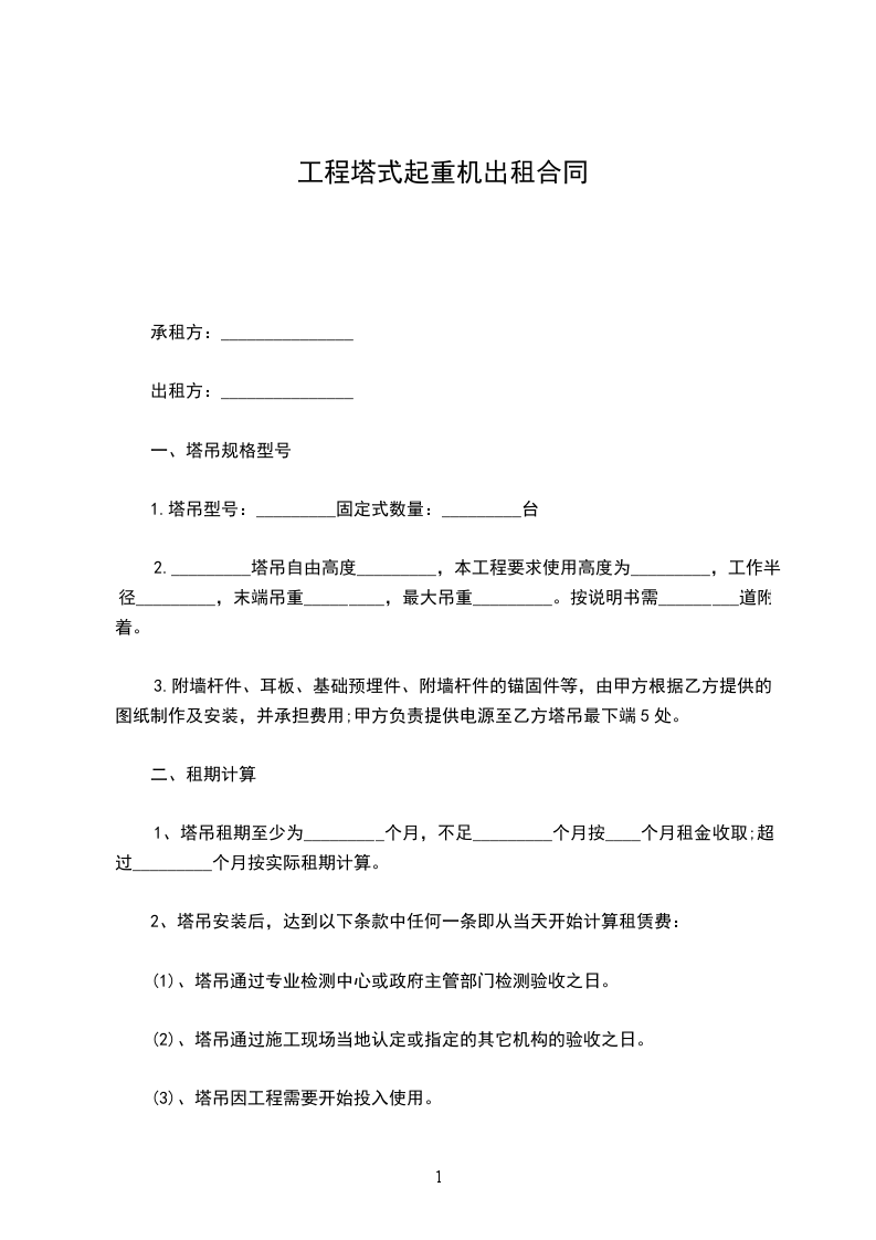 1、乙方提供给甲方的塔吊必须是按出厂日期为准三年以内的设备。