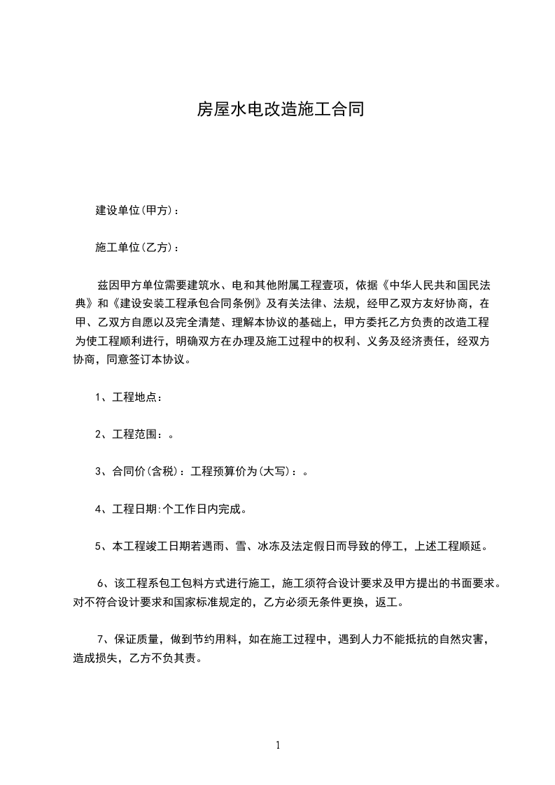 7、保证质量,做到节约用料,如在施工过程中,遇到人力不能抵抗的自然灾害,造成损失,乙方不负其责。
