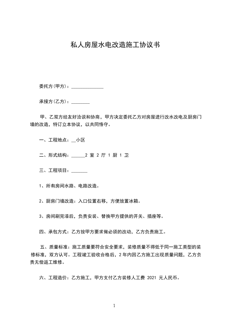 兹因甲方单位需要建筑水、电和其他附属工程壹项,依据《中华人民共和国民法典》和《建设安装工程承包合同条例》及有关法律、法规,经甲乙双方友好协商,在甲、乙双方自愿以及完全清楚、理解本协议的基础上,甲方委托乙方负责的改造工程。为使工程顺利进行,明确双方在办理及施工过程中的权利、义务及经济责任,经双方协商,同意签订本协议。