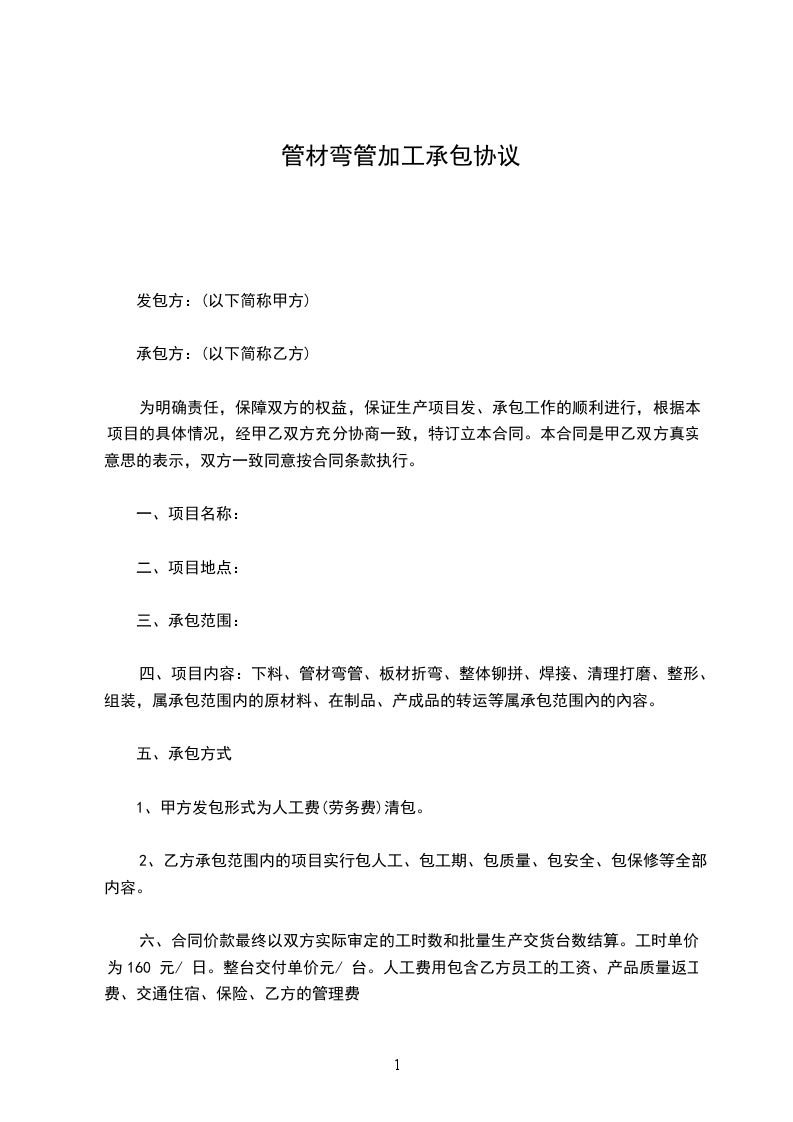 管材加工生产承包合同