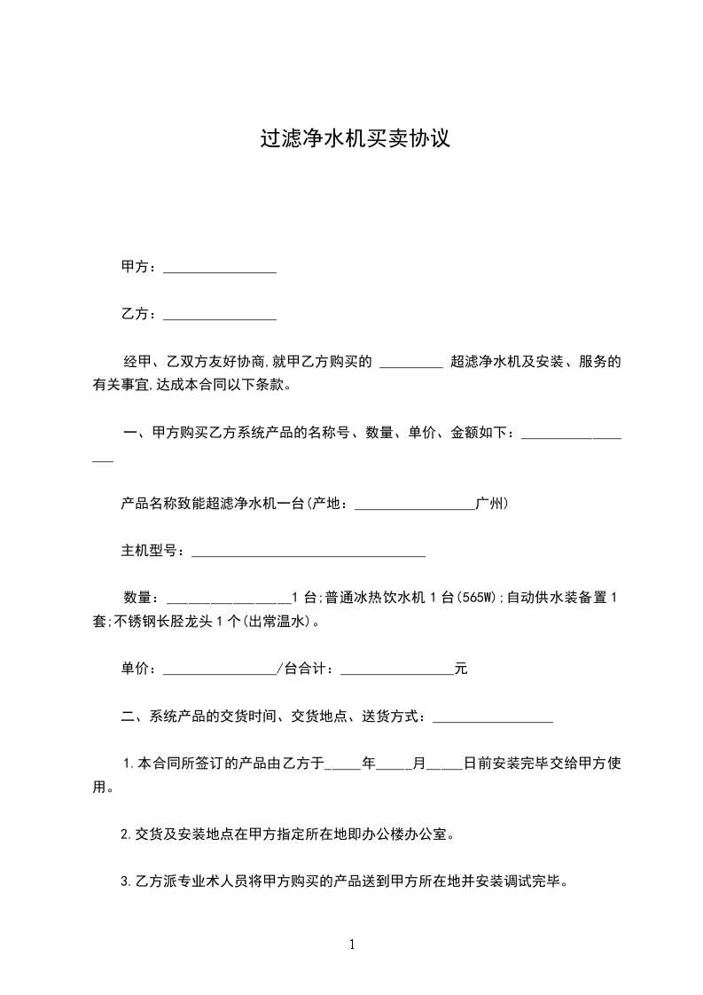 经甲、乙双方友好协商,就甲乙方购买的 _________ 超滤净水机及安装、服务的有关事宜,达成本合同以下条款。