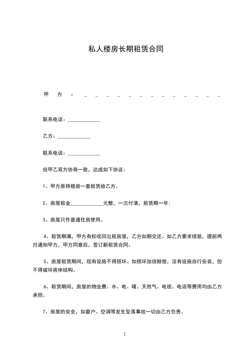 承租人:___(以下简称乙方)电话: