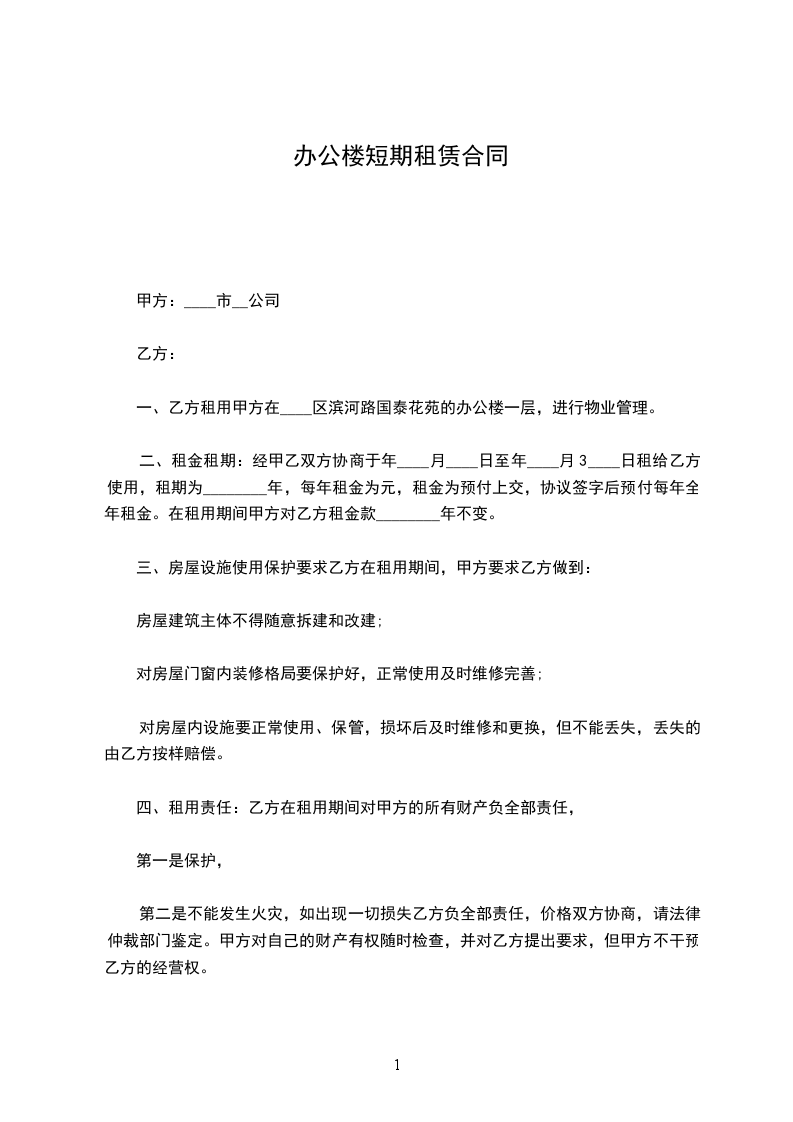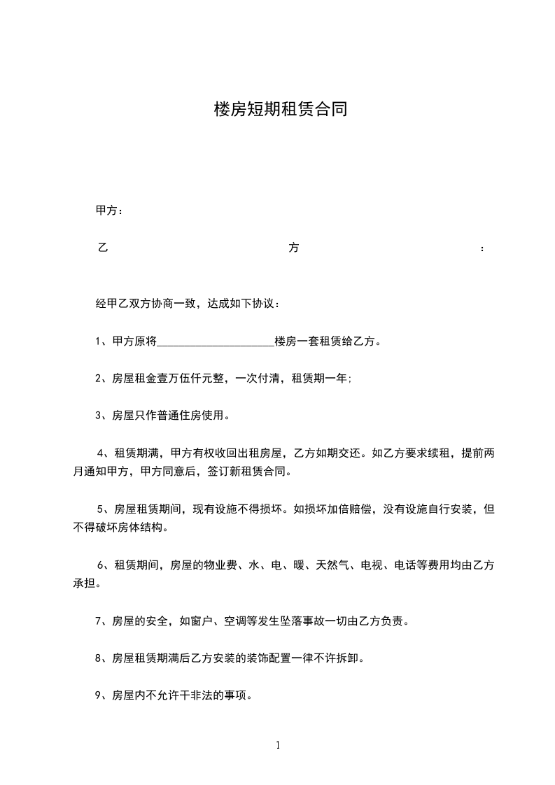 租房合同承租方:_______________________ (以下简称乙方)