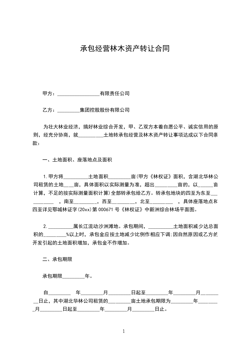 为壮大林业经济,搞好林业综合开发,甲、乙双方本着自愿公平、诚实信用的原则,经充分协商,就__________土地转承包经营及林木资产转让事项达成以下合同条款: