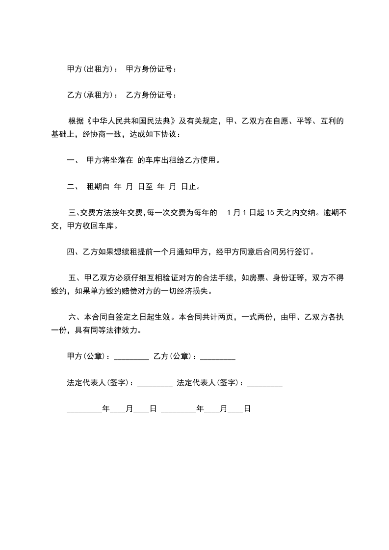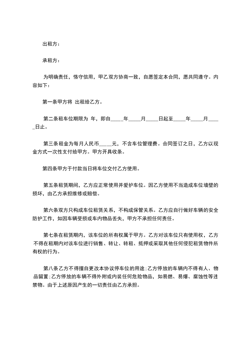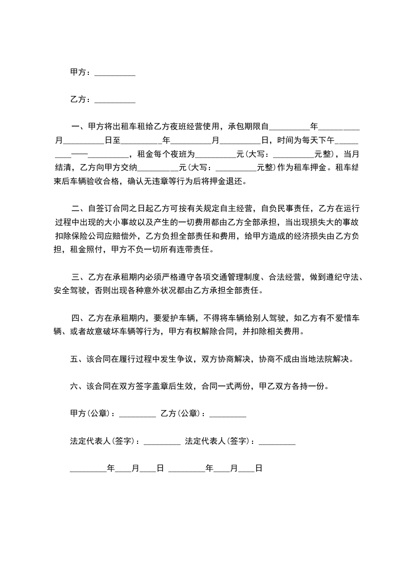 一、租车合同为期 年,即从 年 月 日至 年 月 日。