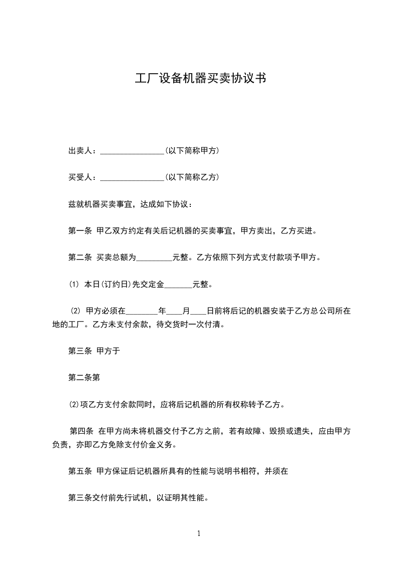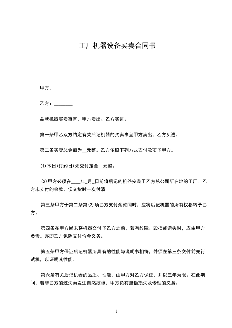 立契约人(以下简称甲方)(以下简称乙方)兹就机器买卖事宜,甲方卖出、乙方买进。