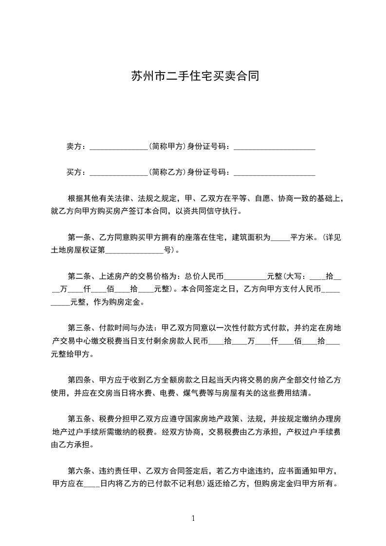买方:_______________(简称乙方)身份证号码:_____________________