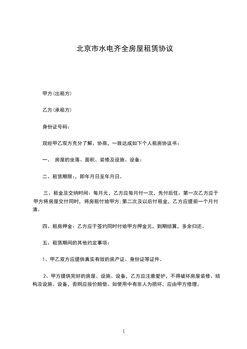 现经甲乙双方充分了解、协商,一致达成如下个人租房协议书: