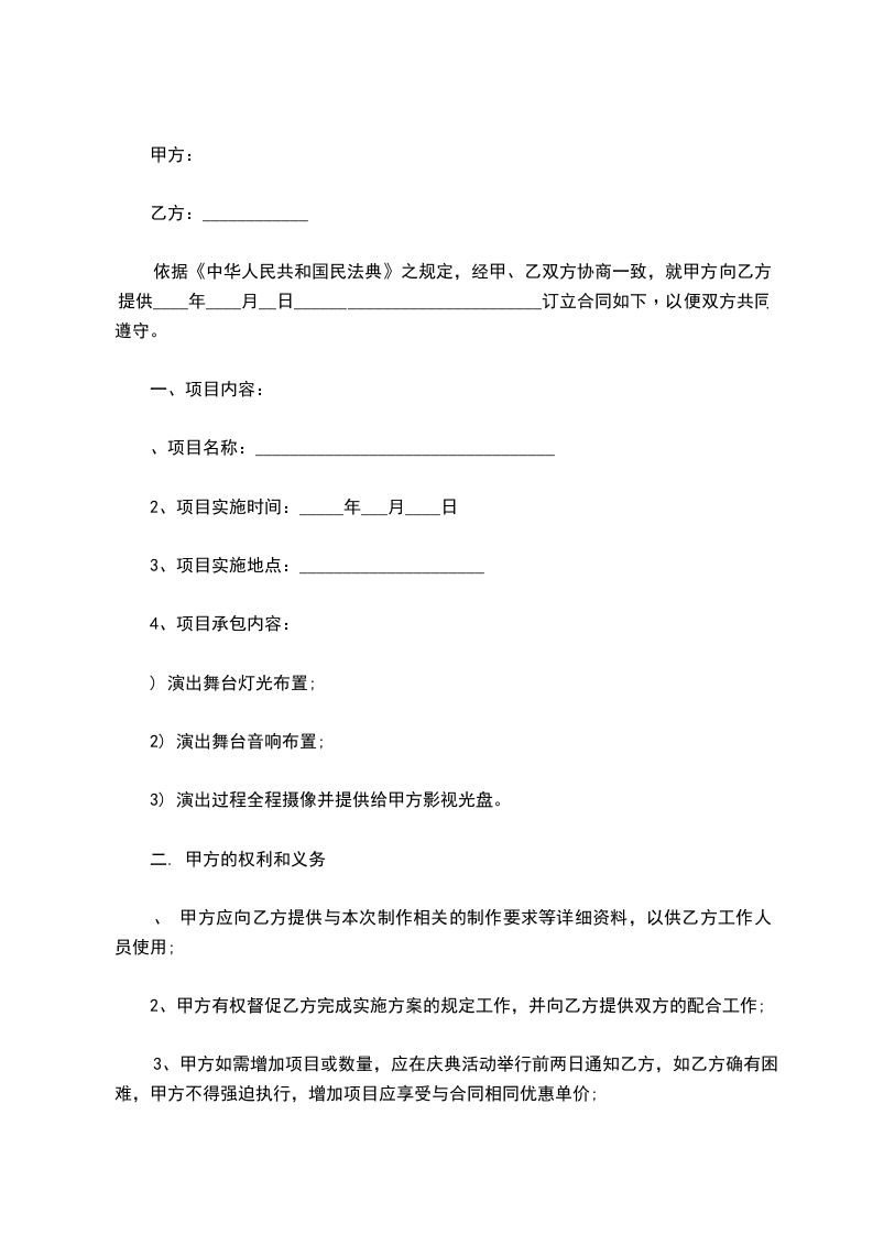 3) 演出过程全程摄像并提供给甲方影视光盘。