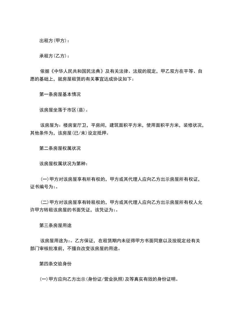 (一)房屋租赁期自_____年_____月_____日至_____年_____月_____日,共计_____年个月。(期限超过年的,超过部分无效。)
