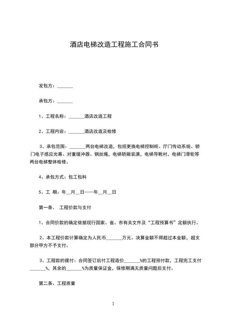 一、工程概况工程名称:____________工程地址:____________承包范围和内容:____________________________________________________________