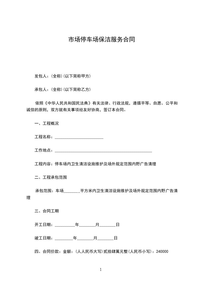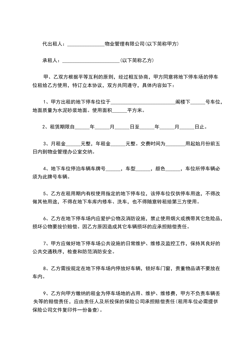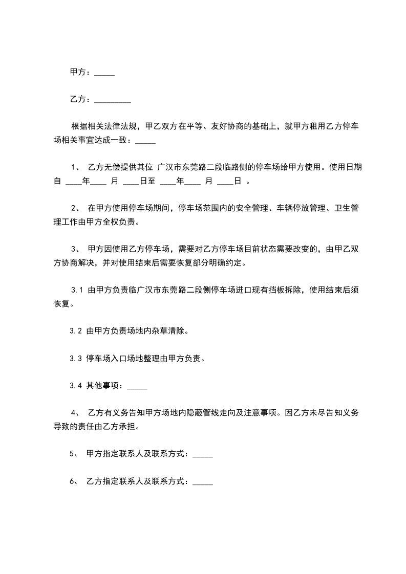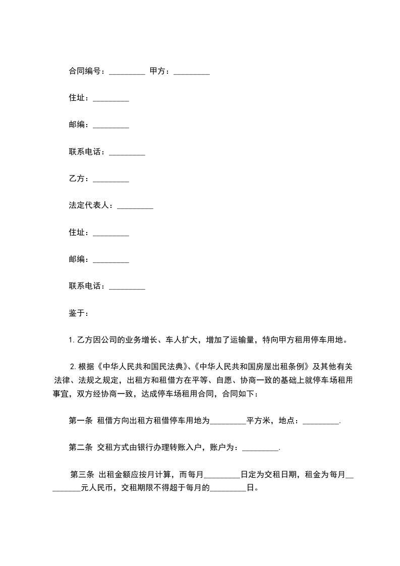 第一条 租借方向出租方租借停车用地为_________平方米,地点:_________.