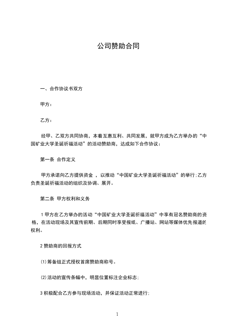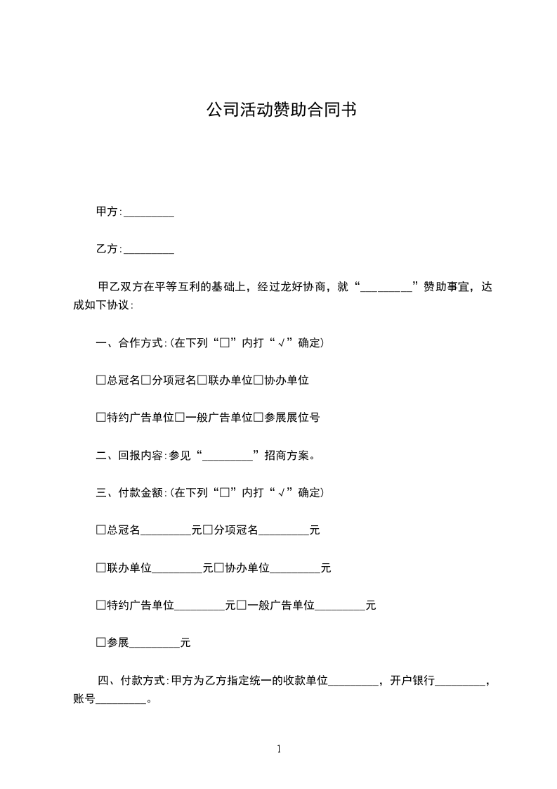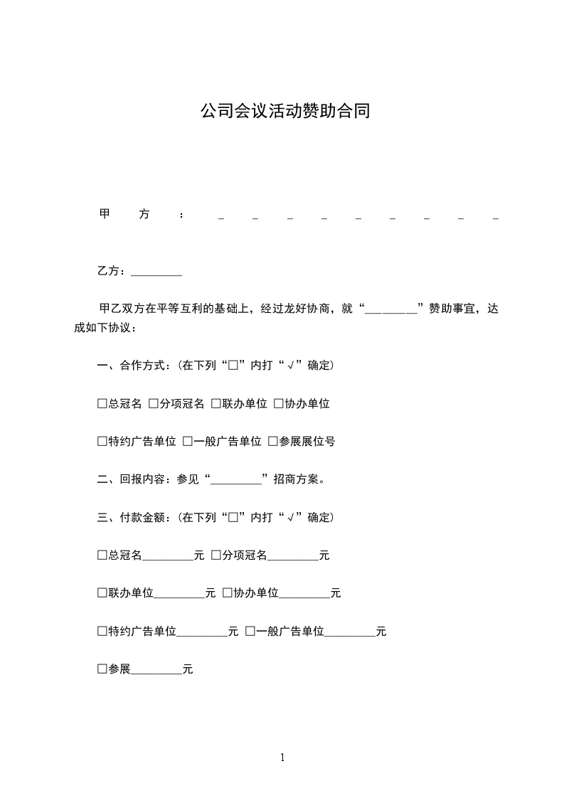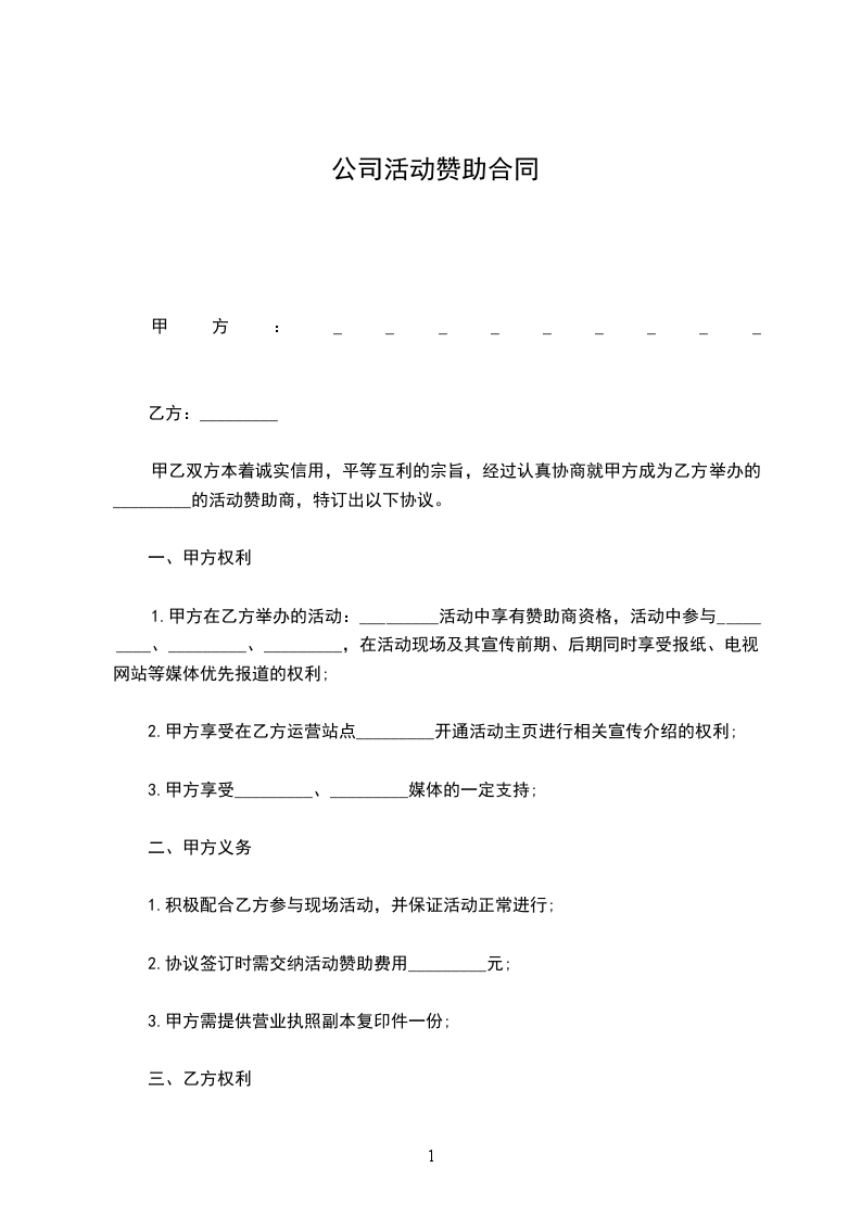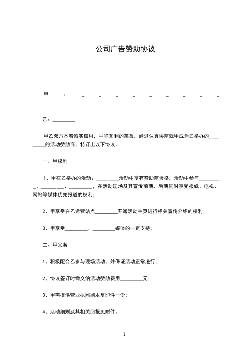 甲乙双方在平等互利的基础上,经过龙好协商,就“_________”赞助事宜,达成如下协议: