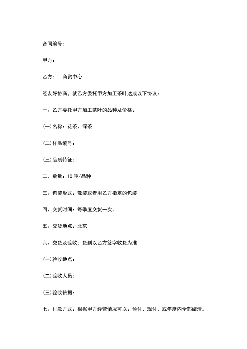 经友好协商,就乙方委托甲方加工茶叶达成以下协议: