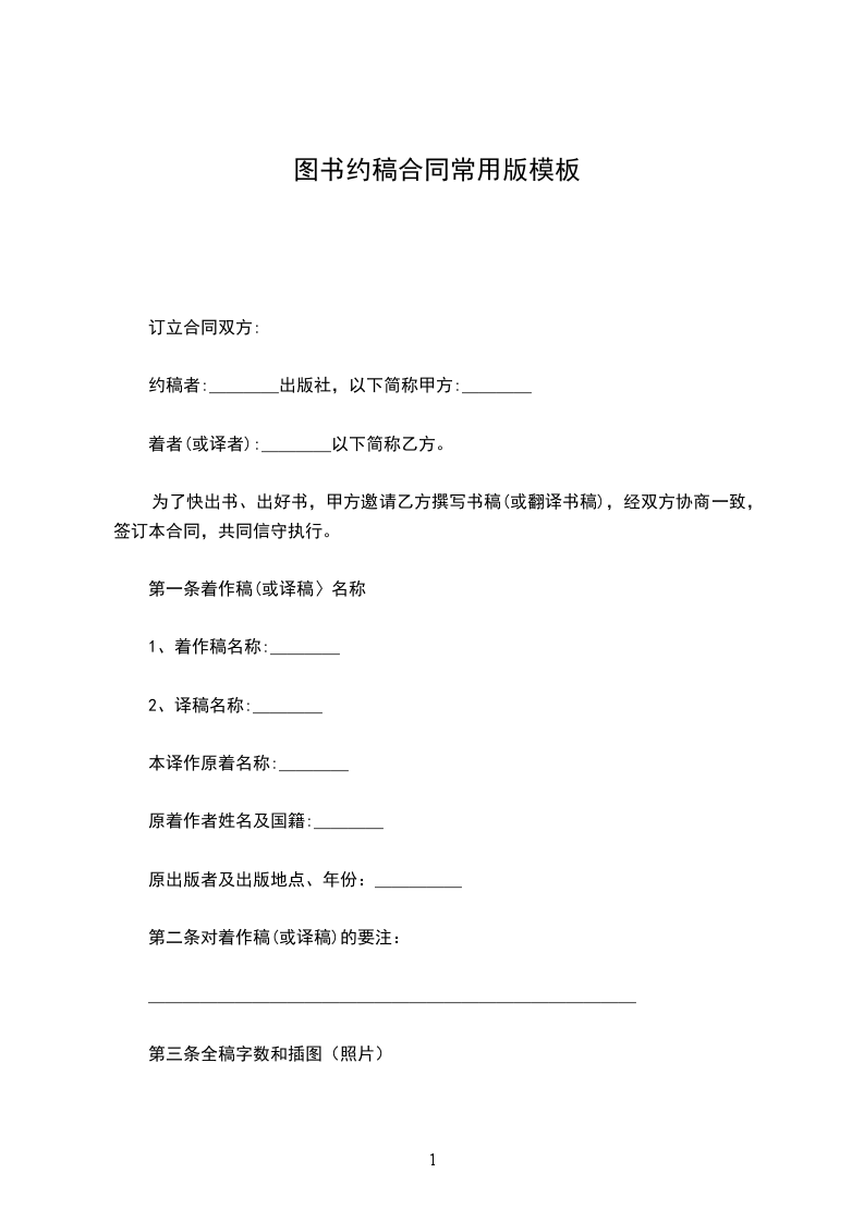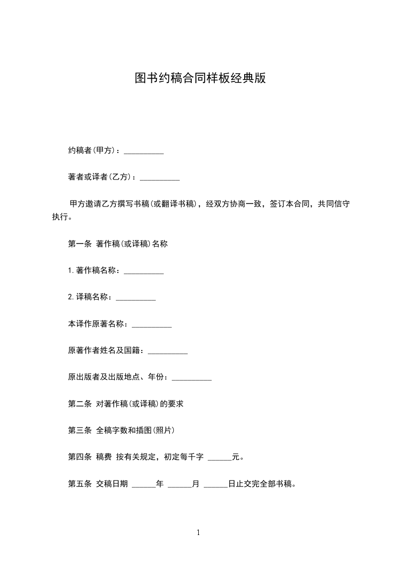 第三条 交稿日期 年 月;著者(或译者)因故不能按期交稿,在半年前向约稿者提出,双方根据书稿情况另议交稿日期或中止合同。