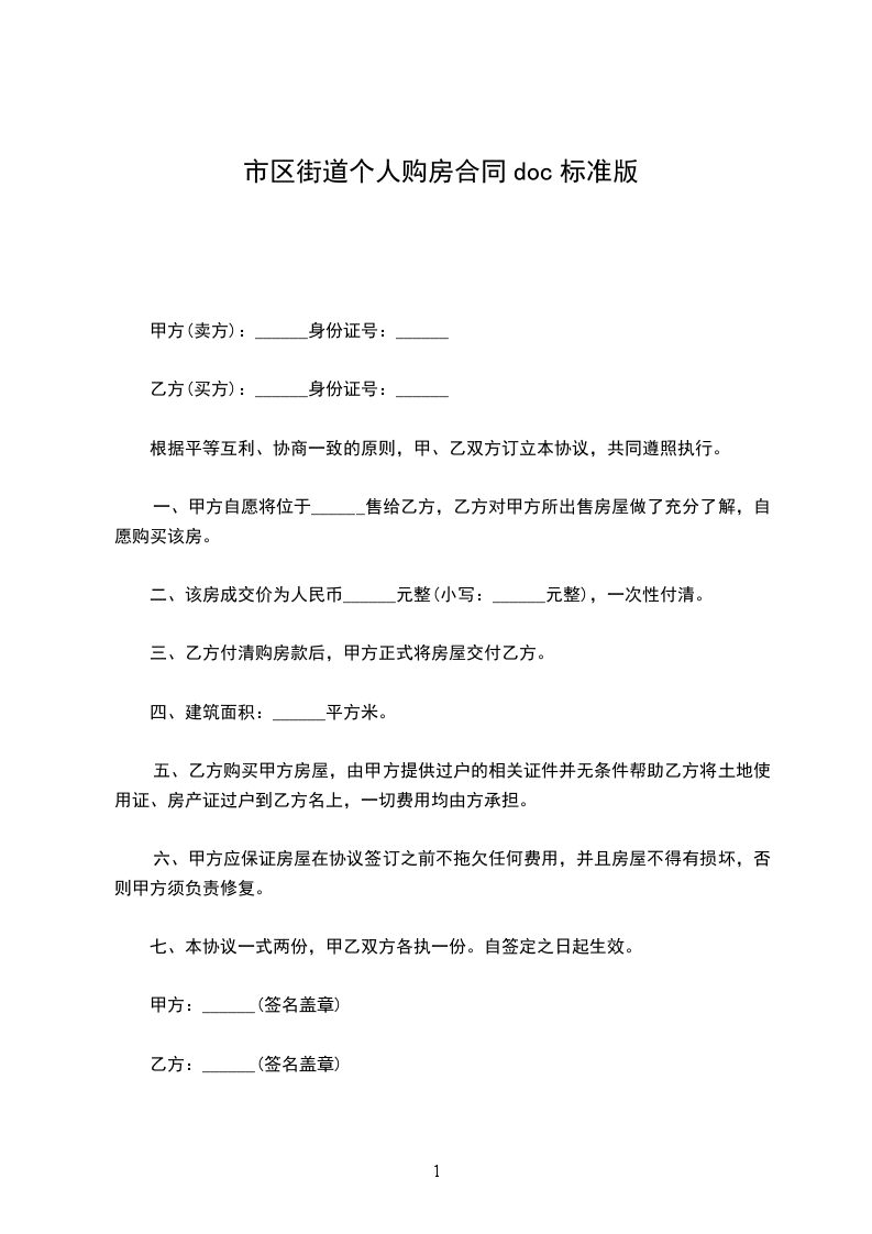 八、 本协议一式2份,甲、乙各1份,并附甲乙双方身份证复印件。