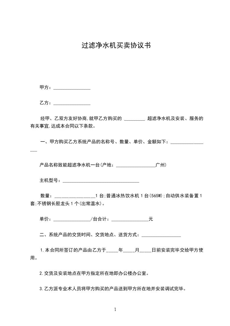 经甲、乙双方友好协商,就甲乙方购买的 _________ 超滤净水机及安装、服务的有关事宜,达成本合同以下条款。