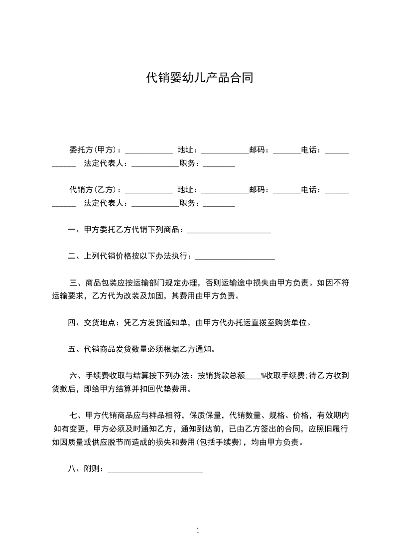 代销方(乙方):____________ 地址:____________邮码:_______电话:____________ 法定代表人:____________职务:________