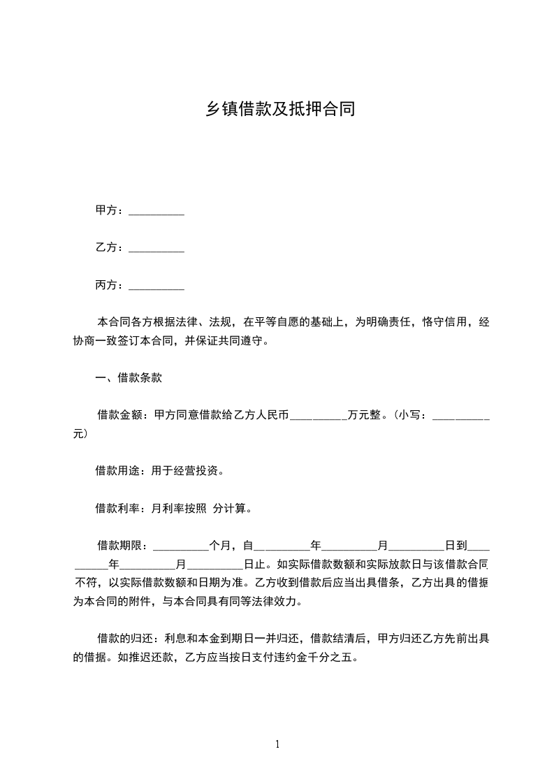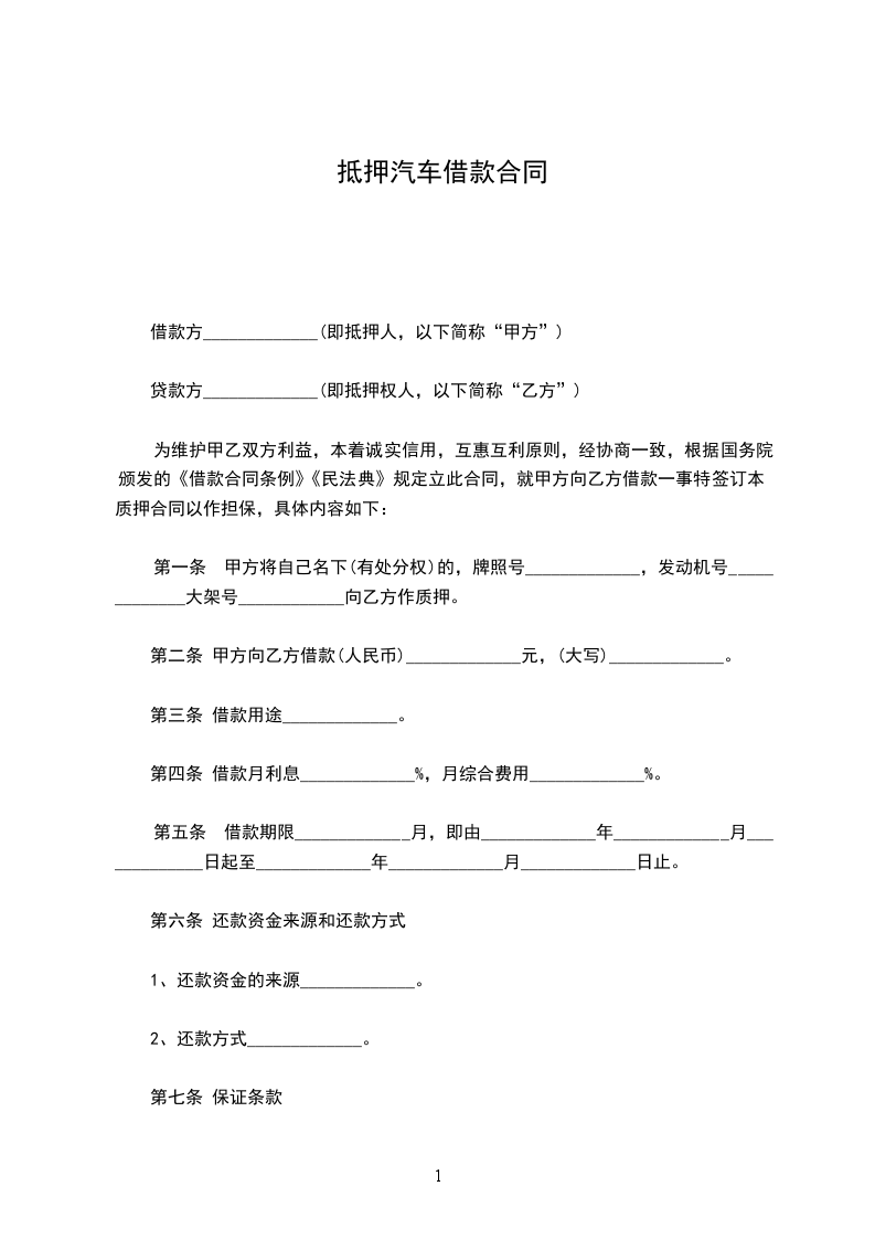 甲方因公司经营需要,以自有车辆做为抵押向乙方借款,借款金额为人民币 ____(大写)____ (小写),经与乙方协商一致,特订立本抵押合同。