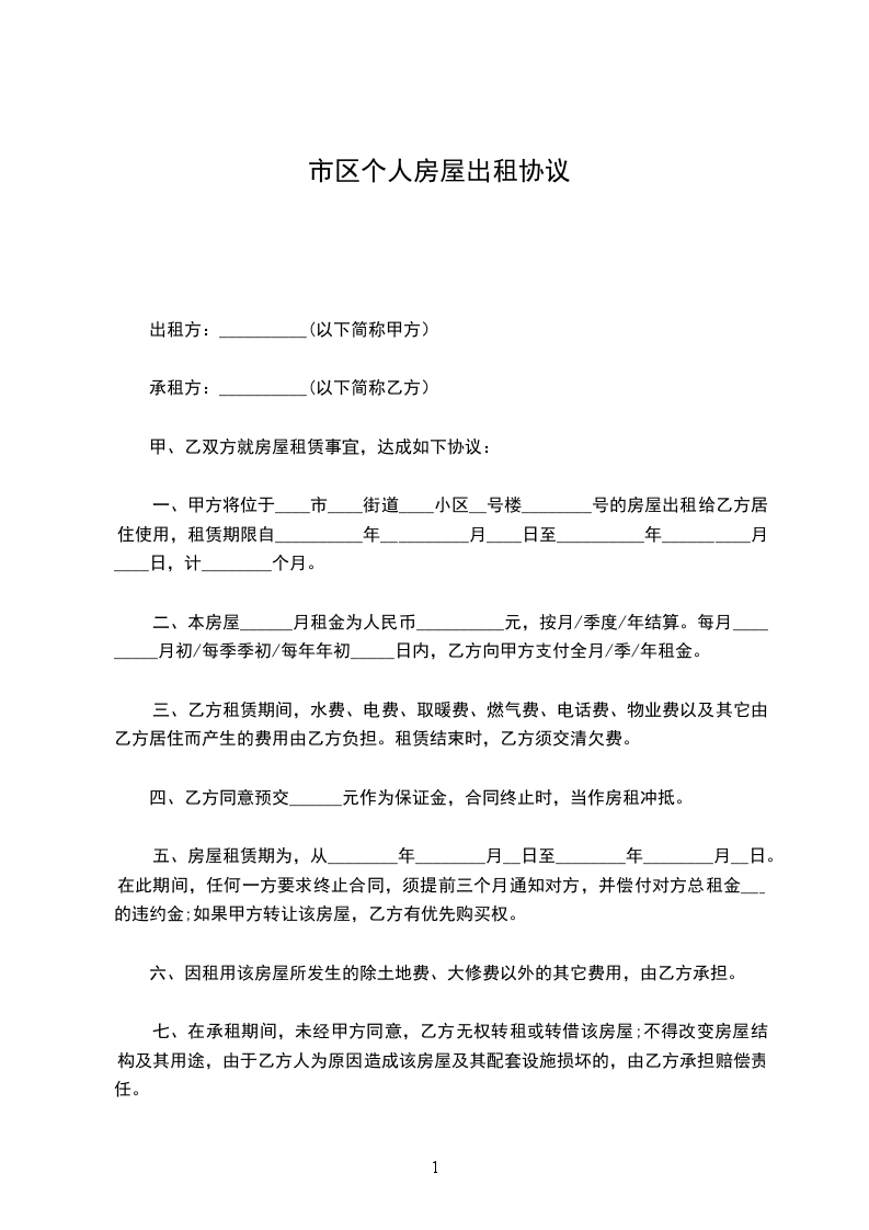 一、甲方将位于____市____街道____小区__号楼________号的房屋出租给乙方居住使用,租赁期限自__________年__________月____日至__________年__________月____日,计________个月。