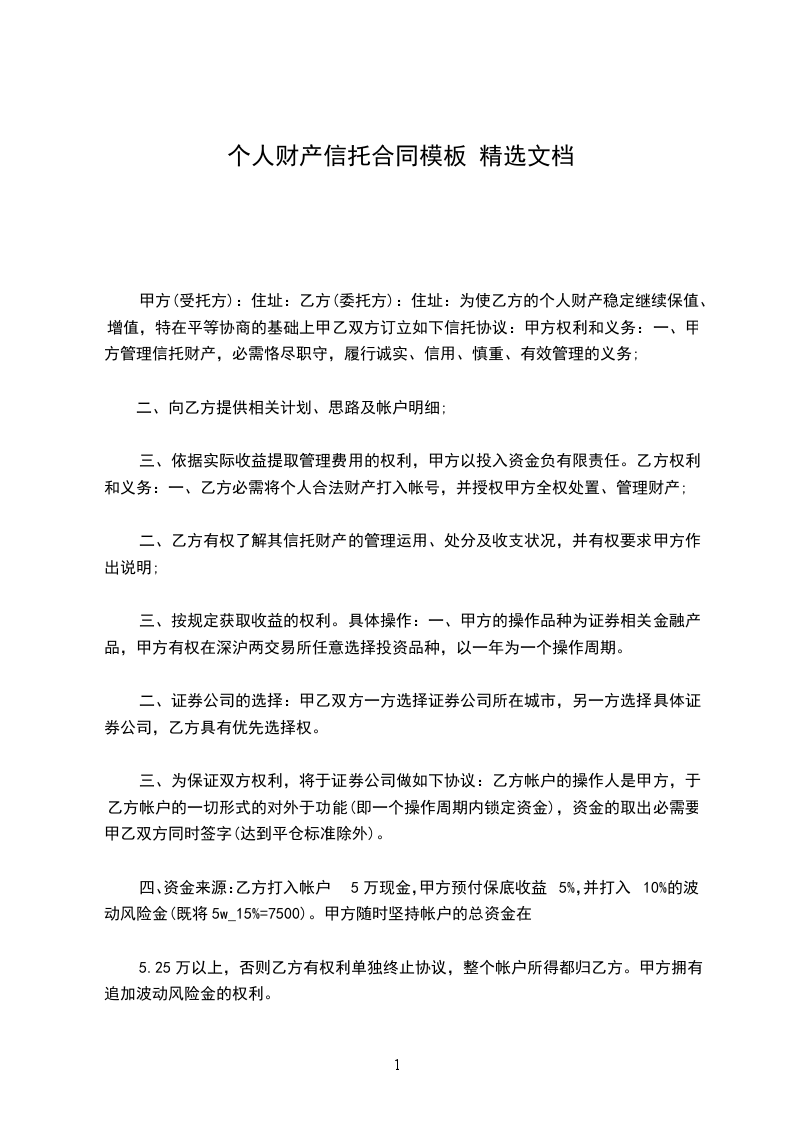 甲方向丙方办理财产信托,除确认财托字第_____号“财产信托基本协议”的各项条款外,有关财产信托的具体事项,补充订立以下条款: