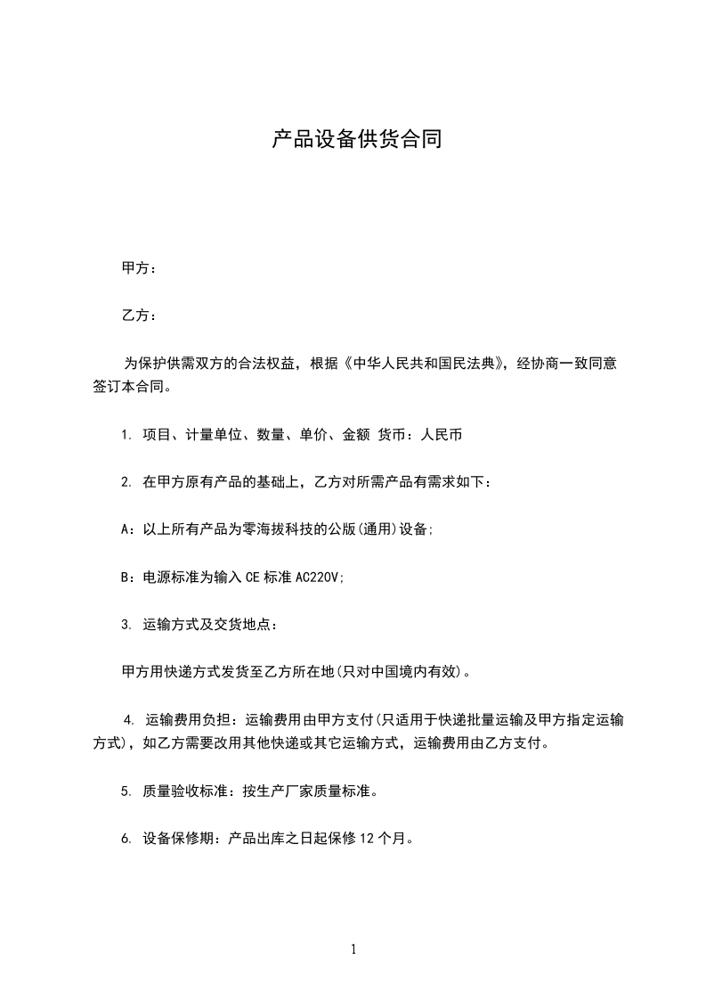 7. 付款方式:款到发货签订本合同后乙方支付总货款的 20% ,即人民币¥ 元(大写人民币:万 仟 佰 拾元整作为定金)。乙方在 月内分批提货;每次批量不少于 台。乙方每次提货均需支付当前批量总额的100%货款,定金将在乙方最后一批购进该产品时作为本批货物的货款全额抵扣。