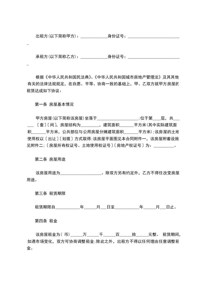 甲、乙双方依据中华人民共和国有关法律法规,在自愿、平等和互利的基础上,就___________房租赁事宜达成如下协议。