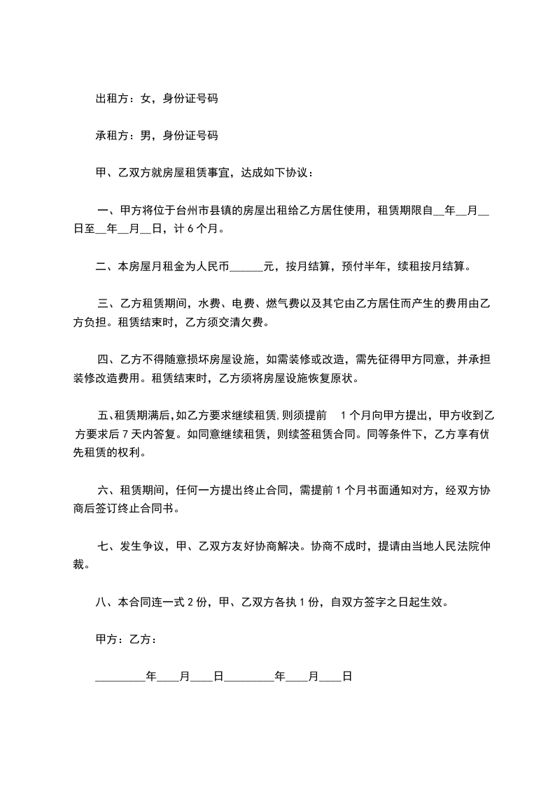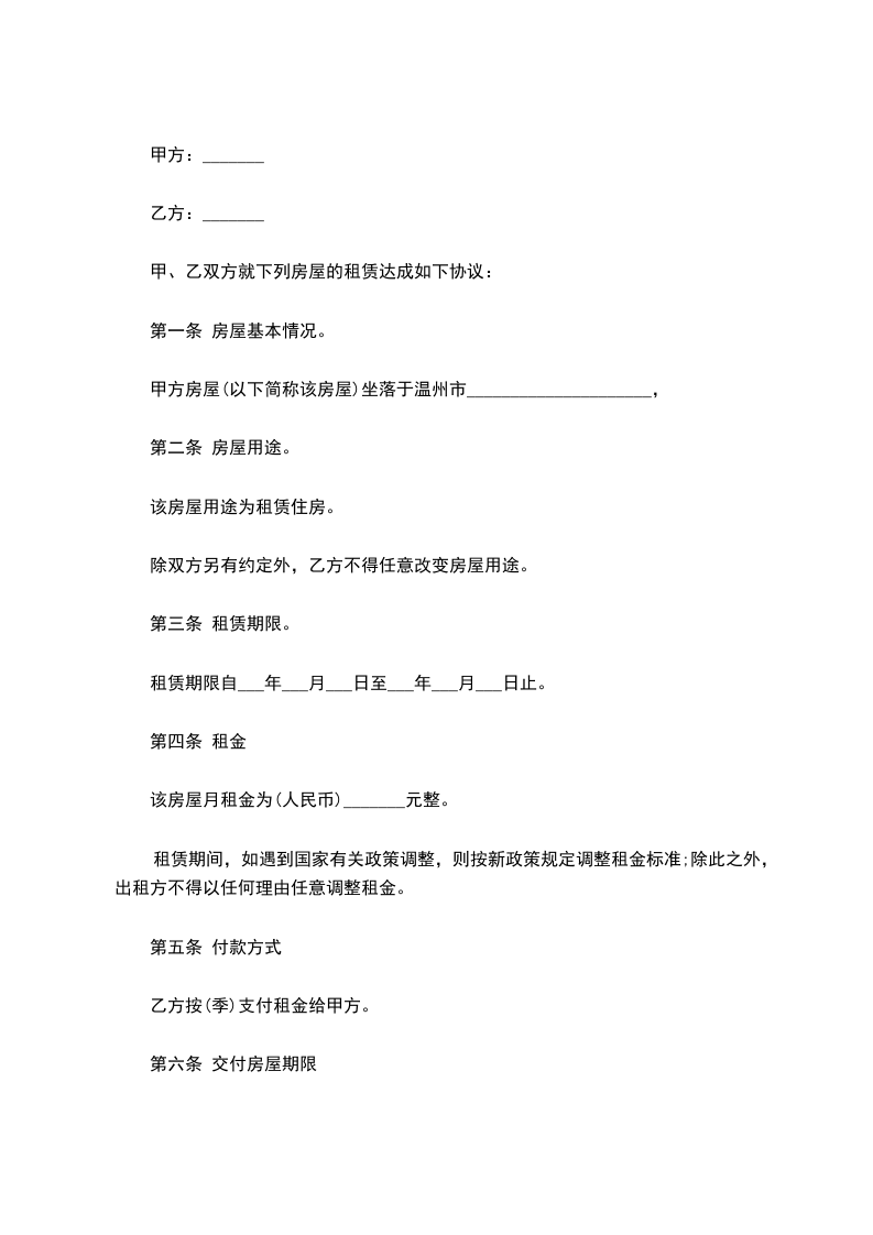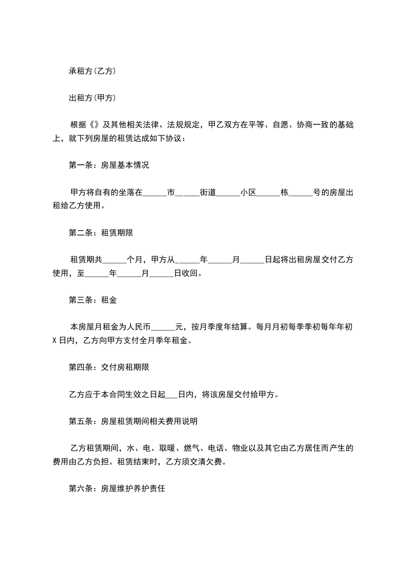 租赁期共______个月,甲方从______年______月______日起将出租房屋交付乙方使用,至______年______月______日收回。