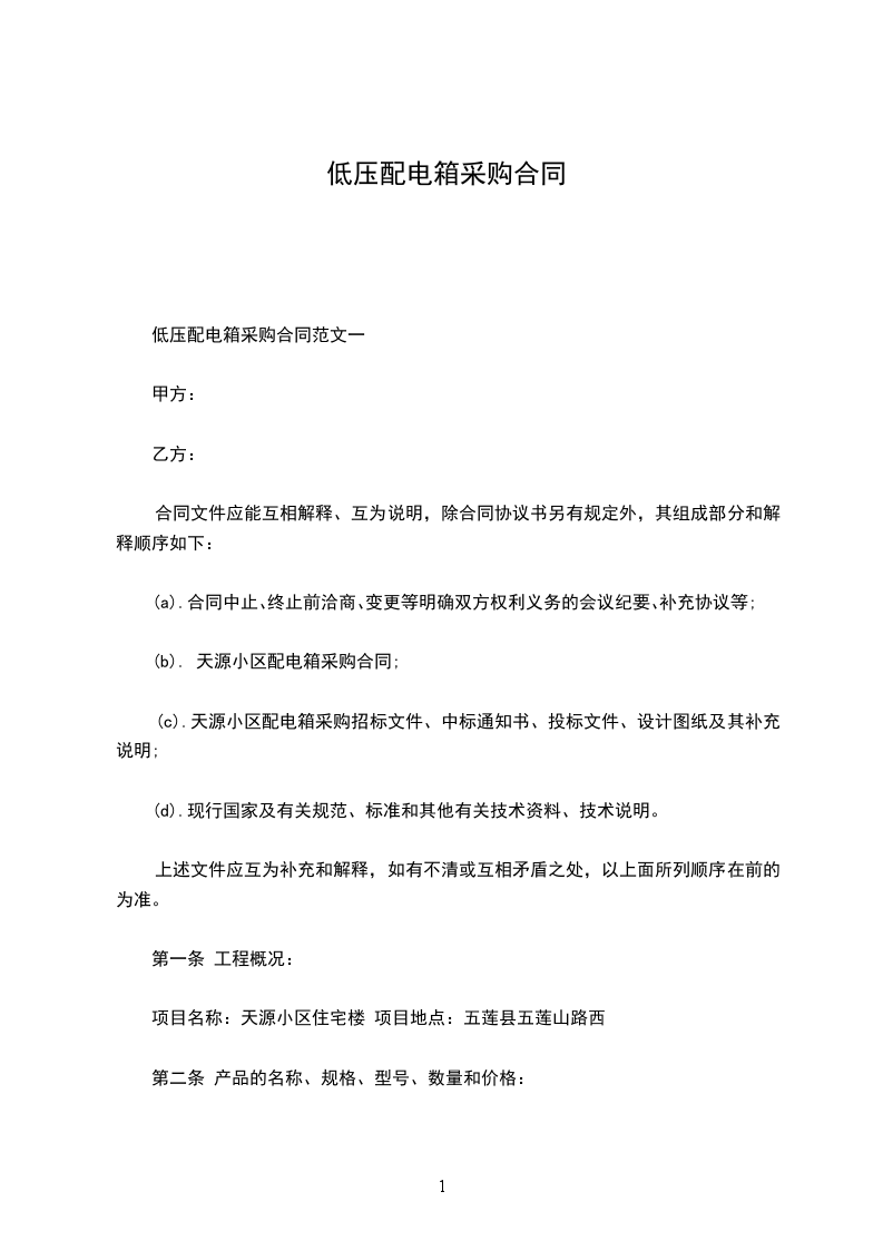 (b). 天源小区配电箱采购合同;
